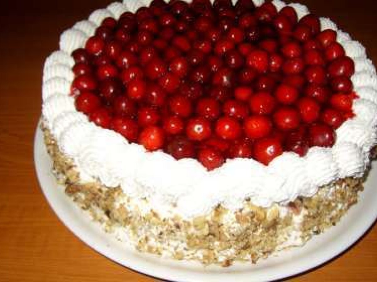 Tort racoros cu cirese. PrecedentulUrmătorul DesertUșor1 h 30 m Trimite unui prieten Printează pagina Adresează o întrebare autorului Postează o poză cu rețeta gătită de tine Ingrediente 8 Tort racoros cu cirese Postat de LALY in Torturi pe 20 Iunie 2010 | 106 vizualizari * Facebook * Twitter * Yahoo * Print * Email * Favorite Un tort usor cu multe fructe. Ingrediente Ingrediente blat: * 8 oua * 8 linguri de zahar * 8 linguri faina * un praf de sare Pentru crema: * 3oo gr smantana grasa * 100 gr zahar pudra * 1 esenta lamaie sau ce aroma va place * 300 gr cirese Pentru sirop: * 250 ml apa * 200 gr zahar * 1 esenta lamaie Pentru decor: * 300 gr frisca * 300 gr cirese * 100 gr alune nesarate * 1 plic gelatina rosie