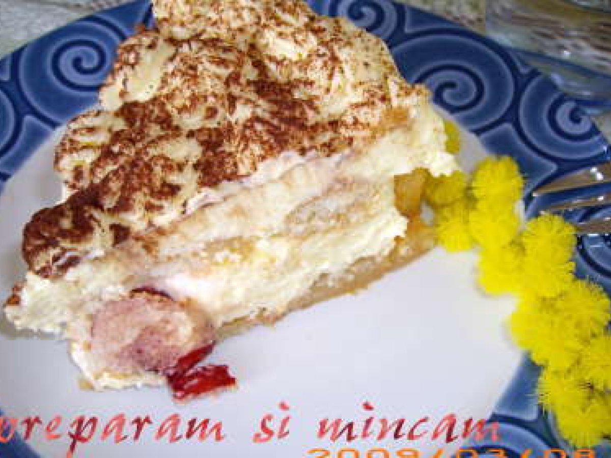Tort tiramisu cu capsuni DesertFoarte ușor30 min Trimite unui prieten Printează pagina Adresează o întrebare autorului Postează o poză cu rețeta gătită de tine Ingrediente 8 un pachet de piscoturi 250 g mascarpone 200 ml de frisca lichida un plic cu crema de vanilie de la renumitul dr Qetker 150 g de zahar 500 gr de capsuni o lamiie 3 portocale cocos, rom fara alcool si cacao (optional)