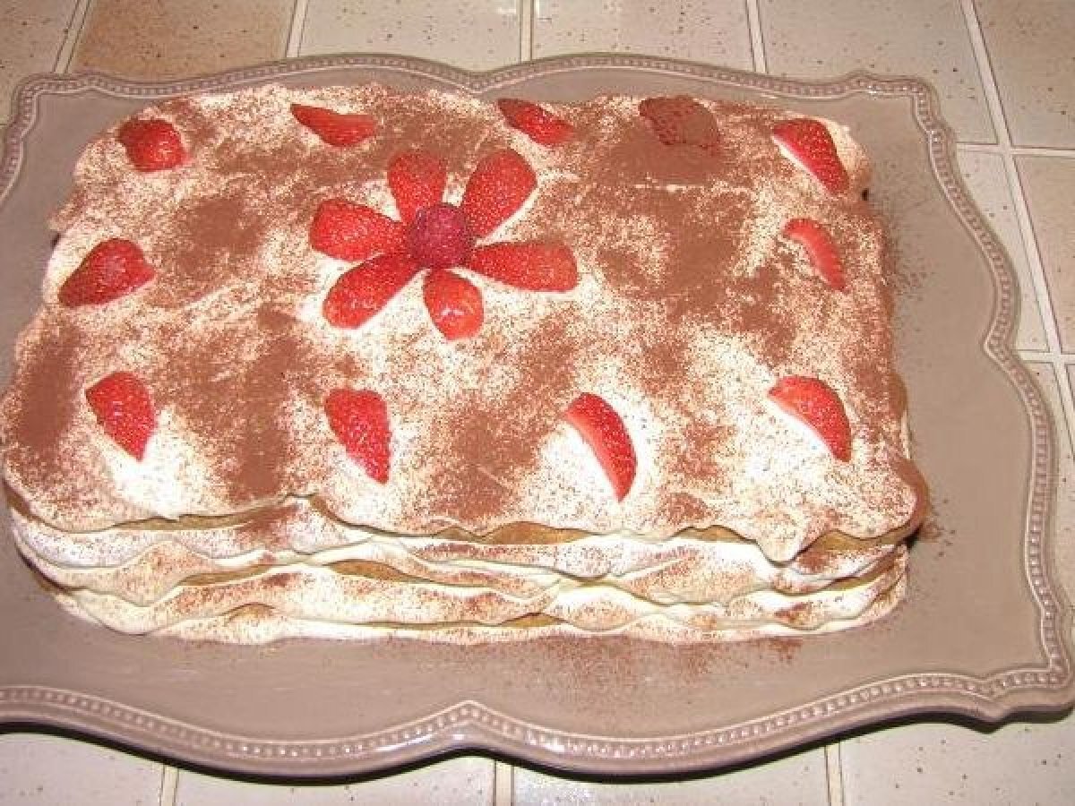 Tort tiramisu DesertFoarte ușor55 min Trimite unui prieten Printează pagina Adresează o întrebare autorului Postează o poză cu rețeta gătită de tine Ingrediente 5 30- 40 piscoturi, in functie de marimea tavii in care se va asambla. 8 galbenusuri. 500 g mascarpone. 8 linguri zahar pudra. 250 -500 ml frisca lichida , in functie de preferinta. putina sare. 4 cescute de cafea tare. 3-4 linguri lichior de cafea, se poate si fara daca nu - aveti. cacao pt pudrare finala
