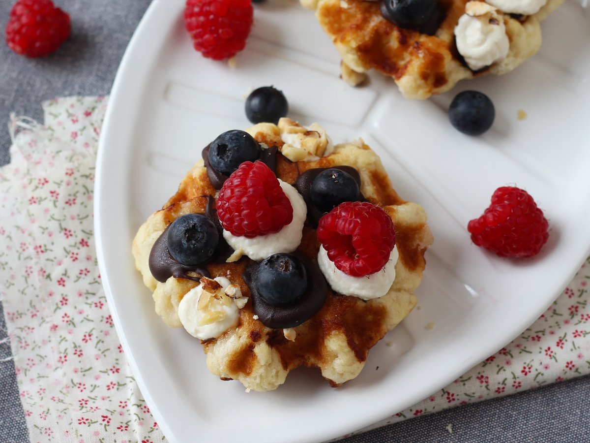 Vreți să vă faceți vafele și mai gustoase? Ați ajuns la locul potrivit ;-) Imaginează-ți o frumoasă vafă Liège, crocantă la exterior și moale la interior, acoperită cu un amestec de ciocolată topită, alune prăjite și fructe proaspete precum afine și zmeură... Și pentru și mai multă plăcere, o lingură generoasă de frișcă cu mascarpone completează totul. O gustare simplă, dar eficientă, care cu siguranță va fi pe placul întregii familii!