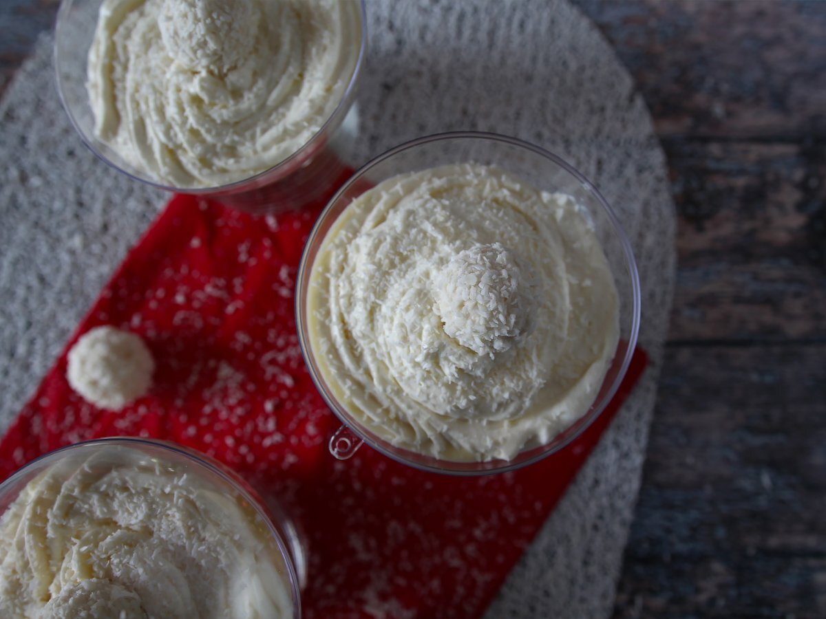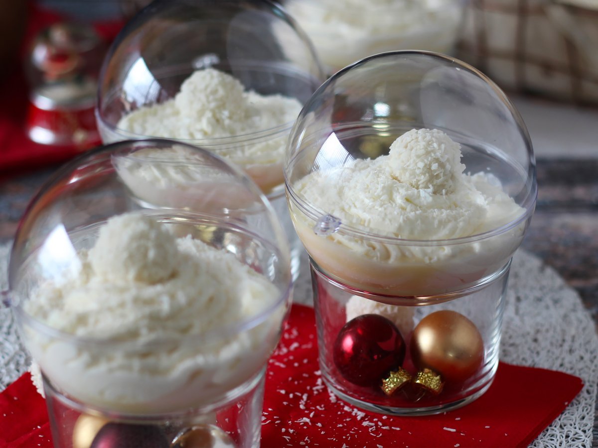 Pentru un desert de Crăciun simplu și atrăgător, vă sugerăm verrinele noastre cu cocos în stil Raffaello! O rețetă garantată „fără gătit” și răsfăț 100% pentru toți cei care doresc să ofere oaspeților un desert elegant. Urmează pașii rețetei și, mai ales, bucură-te de sărbătorile de sfârșit de an :-)