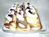Ingrediente: CLATITE: 1 l lapte 3 oua 600-700 g. faina 1 lingura zahar esenta de vanilie 1 praf de sare 1 ceasca apa minerala CREMA 1 plic budinca de vanilie...