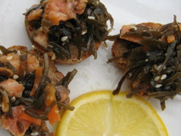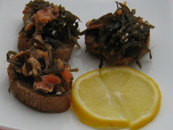 Alge de mare cu somon afumat PrecedentulUrmătorul Felul principalFoarte ușor25 min Trimite unui prieten Printează pagina Adresează o întrebare autorului Postează o poză cu rețeta gătită de tine Ingrediente 2 Algele de mare cu Somon Afumat contin: alge de mare fierte 50% somon afumat 23% ulei de floarea soarelui 15% morcov 7% susan 1% sare 3 % condimente 1 %