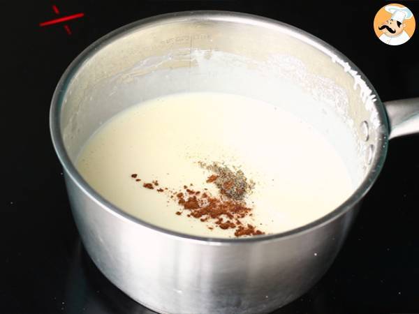 Adaugati laptele putin cate putin in timp ce amestecati. Bechamel ar trebui sa se ingroase.