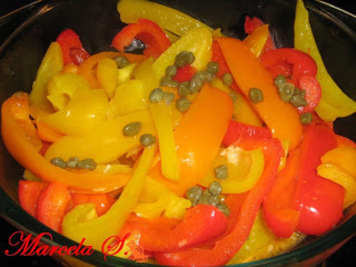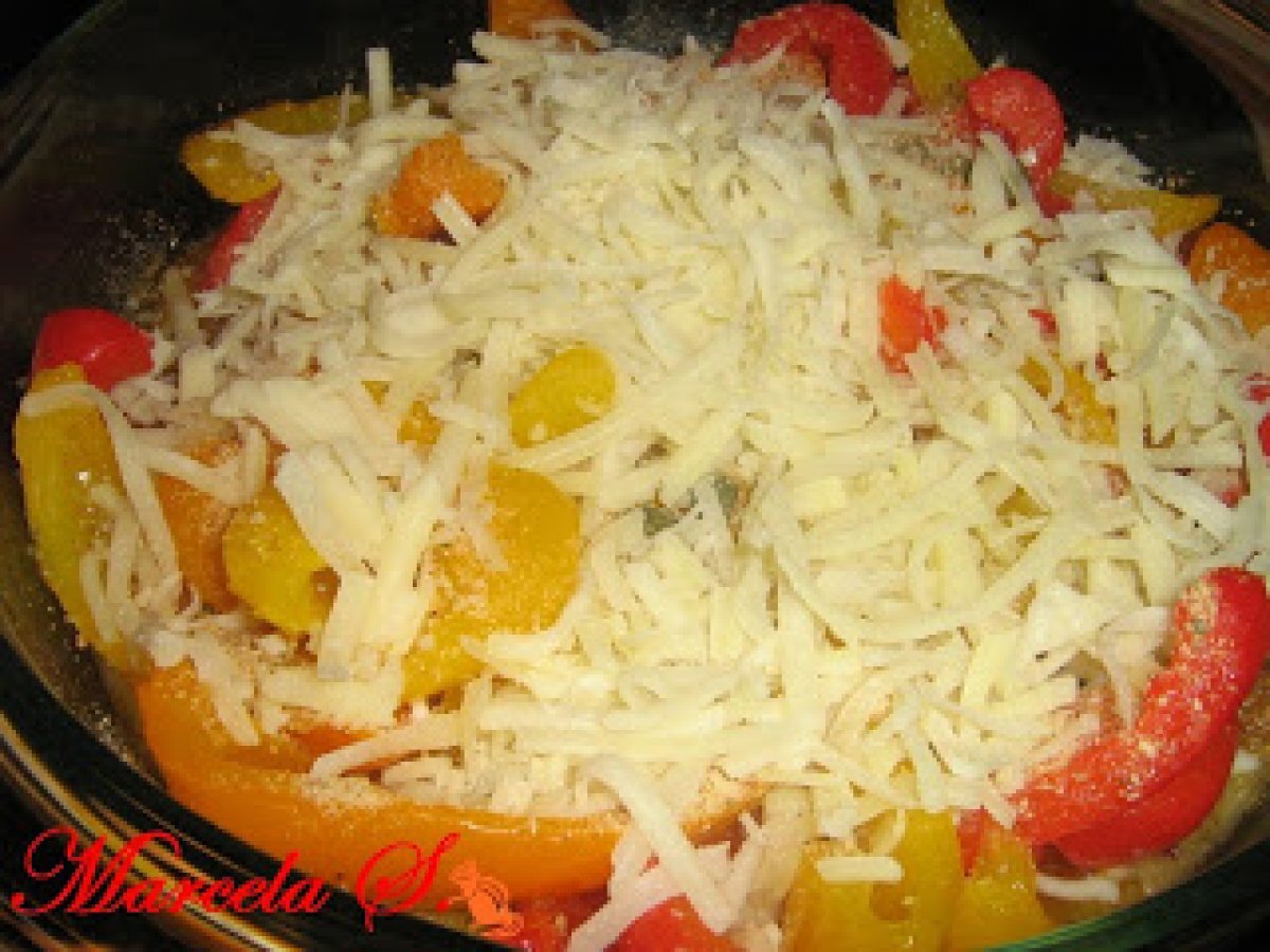 Ardei cu parmezan la cuptor votează acum PrecedentulUrmătorul Felul principalFoarte ușor1 oră Trimite unui prieten Printează pagina Adresează o întrebare autorului Postează o poză cu rețeta gătită de tine Ingrediente 2 6 ardei (2 rosii, 2 galbeni si 2 portocalii) 2-3 catei de usturoi capere sare, piper parmezan ras ulei de masline pesmet(optional)