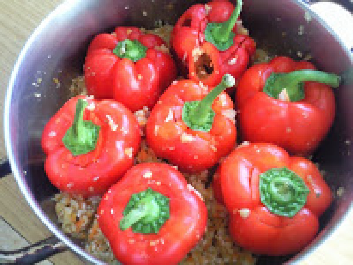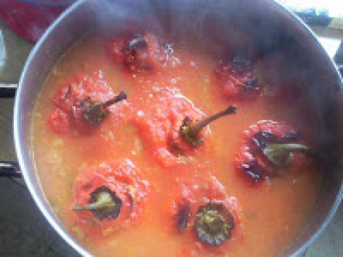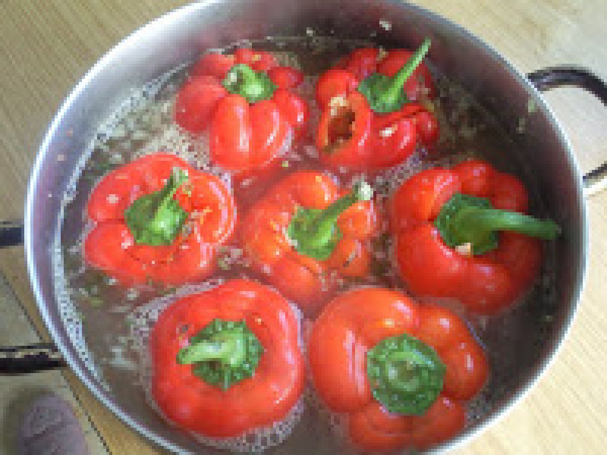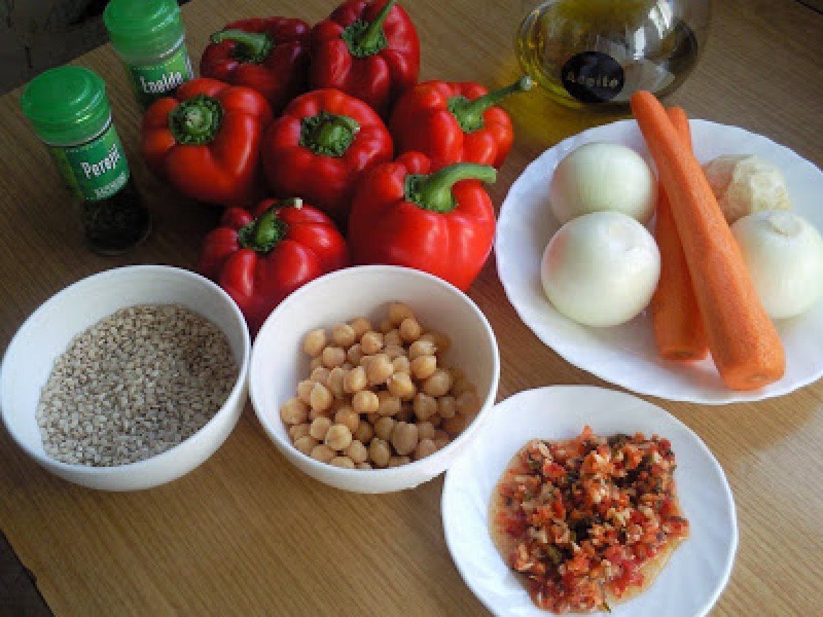 Ardei umplut cu orez si naut /pimiento relleno con arroz y garbanzo PrecedentulUrmătorul Felul principalFoarte ușor1 oră Trimite unui prieten Printează pagina Adresează o întrebare autorului Postează o poză cu rețeta gătită de tine Ingrediente 4 150 g orez integral 200 g naut fiert 7 ardei 3 cepe 2 morcovi 1 telina mica 6 linguri ulei de masline 400 g suc de rosii 3 linguri vegeta de casa( facuta de mama) patrunjel,marar si oregano sare dupa gust