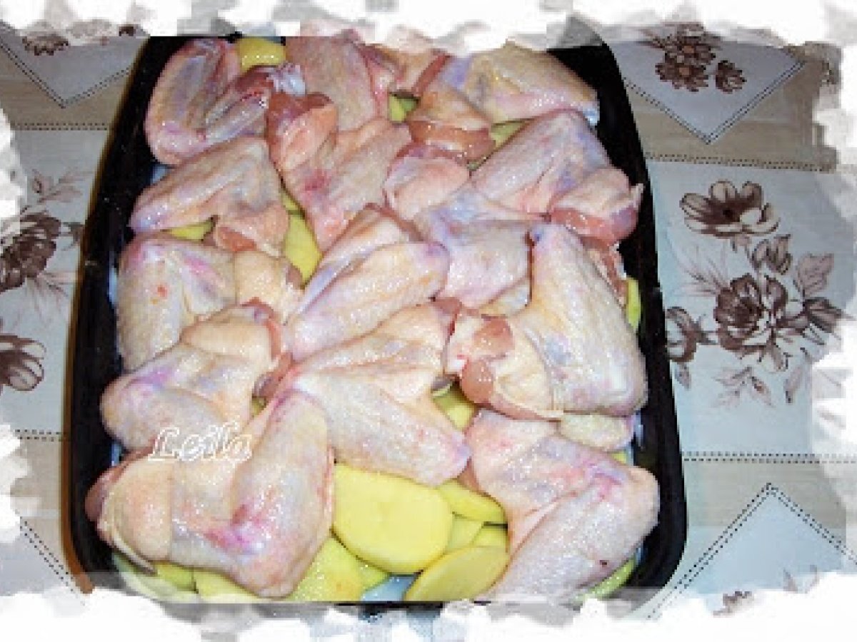 Aripioare la cuptor PrecedentulUrmătorul Felul principalFoarte ușor50 min Trimite unui prieten Printează pagina Adresează o întrebare autorului Postează o poză cu rețeta gătită de tine Ingrediente 4 aripioare pui cartofi mujdei usturoi 50 - 100 ml vin alb demisec maghiran sare untura sau ulei o tava mai adanca
