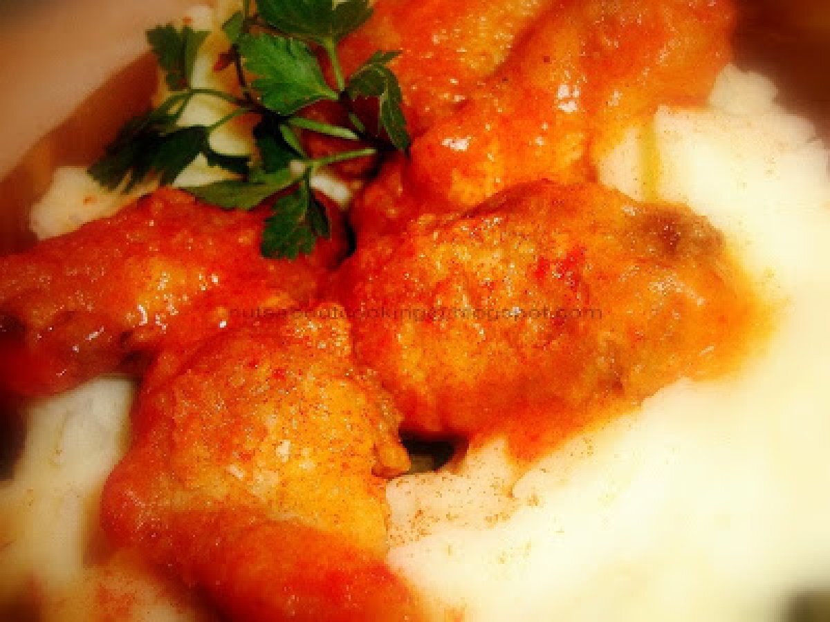 Aripioare picante PrecedentulUrmătorul Felul principalFoarte ușor1 oră Trimite unui prieten Printează pagina Adresează o întrebare autorului Postează o poză cu rețeta gătită de tine Ingrediente 4 5 aripioare de pui, taiate in segmente 1/2 cana de faina 1 lingurita de sare 1 lingurita de piper 1 lingurita de boia iute/fulgi de chili 1/2 lingurita de amidon 1 lingurita de sos de ardei iute 2 lingurite de boia de ardei dulce 60 g de unt sare 3-4 linguri de apa