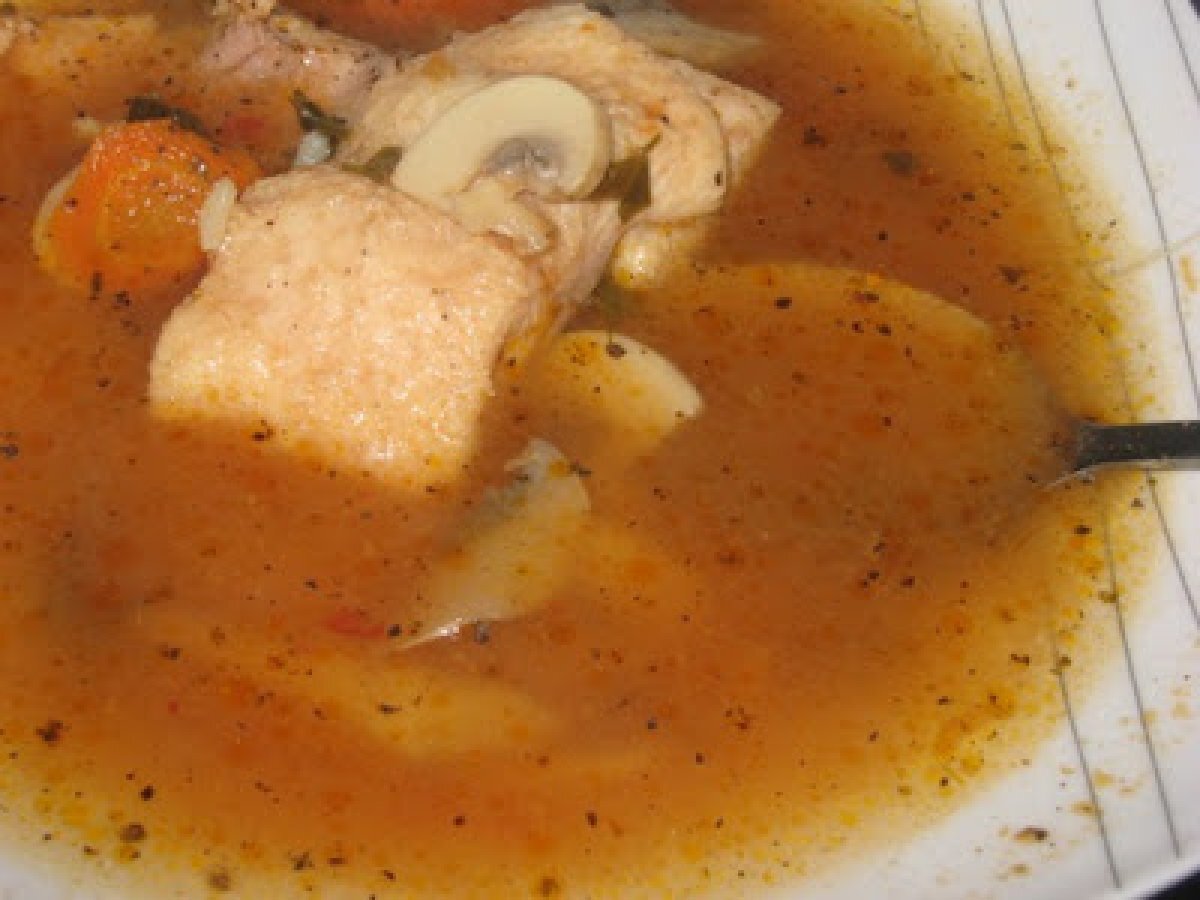 Bors de ciuperci cu file de peste PrecedentulUrmătorul Felul principalFoarte ușor45 min Trimite unui prieten Printează pagina Adresează o întrebare autorului Postează o poză cu rețeta gătită de tine Ingrediente 2 600 g file de peste 250 g ciuperci de care va vin la indemana ceava legume (o ceapa mica, o jumatate de morcov, o felie groasa de telina si o jumatate de radacina de patrunjel) 100 ml suc de rosii 50 g zarzavat de iarna 300 ml bors de casa 50 g orez 20 ml untura de peste topita cateva fire de patrunjel proaspat sare si piper dupa gust