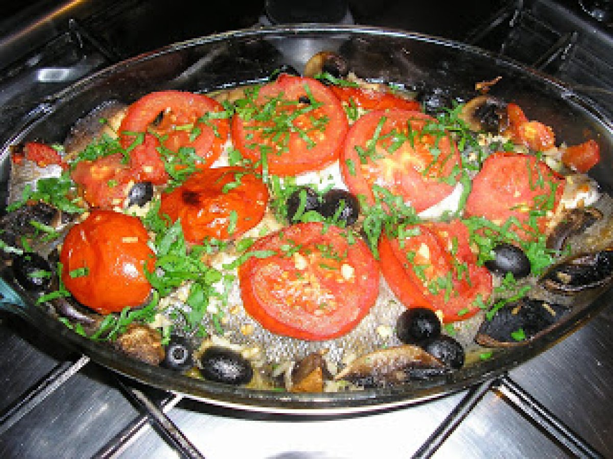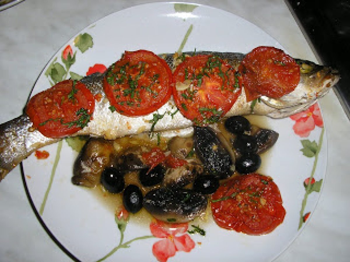 Branzino con funghi e olive(biban de mare cu ciuperci si masline) PrecedentulUrmătorul Felul principalFoarte ușor40 min Trimite unui prieten Printează pagina Adresează o întrebare autorului Postează o poză cu rețeta gătită de tine Ingrediente 2 2 bibani de circa 250 g fiecare 2 rosii 2 catei de usturoi 7-8 ciuperci cateva masline negre sare, piper ulei de masline.