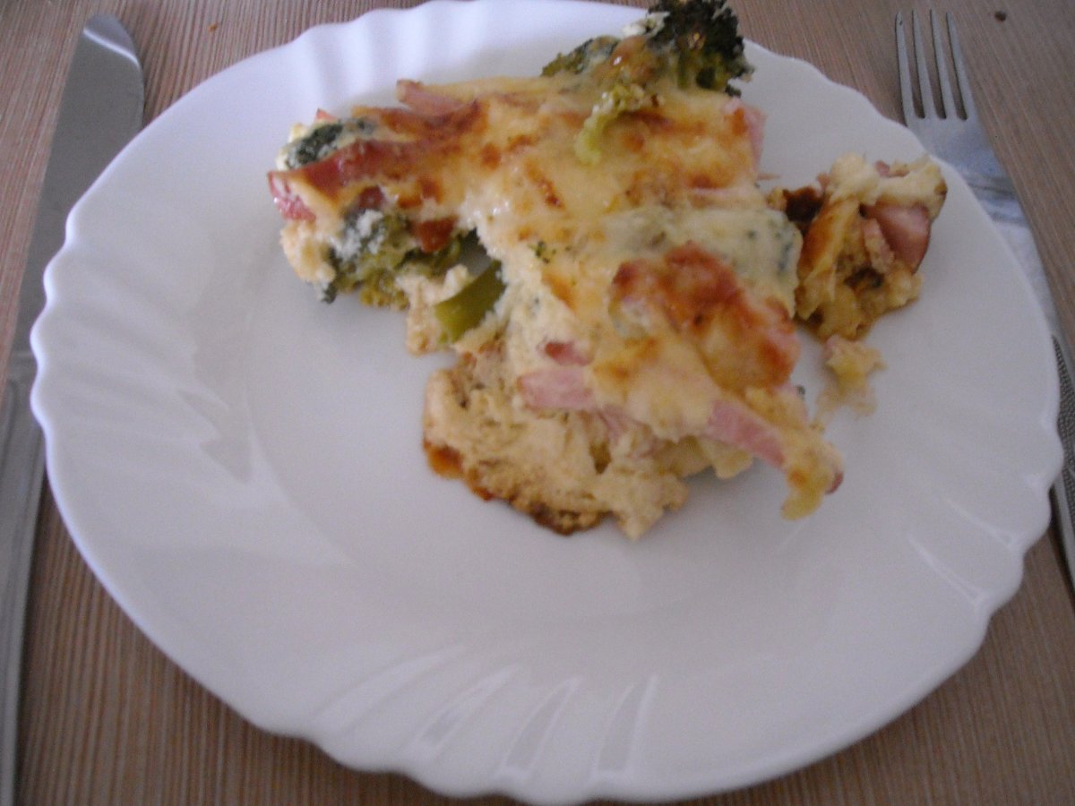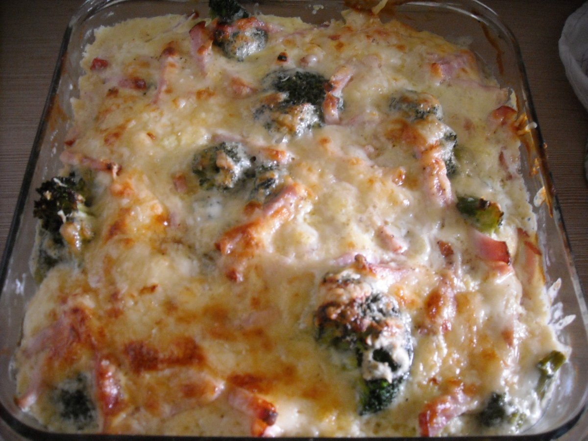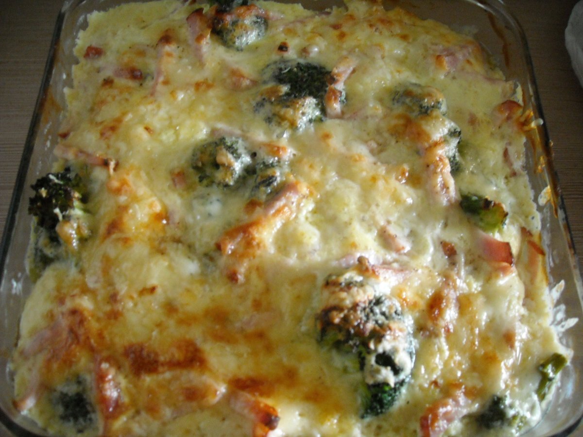 Broccoli gratinat PrecedentulUrmătorul Felul principalFoarte ușor45 min Trimite unui prieten Printează pagina Adresează o întrebare autorului Postează o poză cu rețeta gătită de tine Ingrediente 4 Emmentaler Cascaval Oua Smantana Sunca presata broccoli