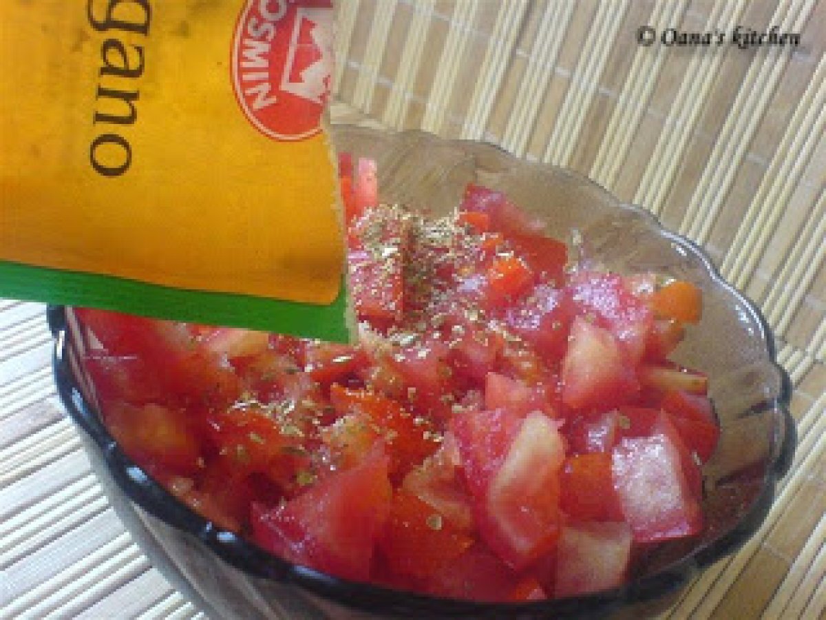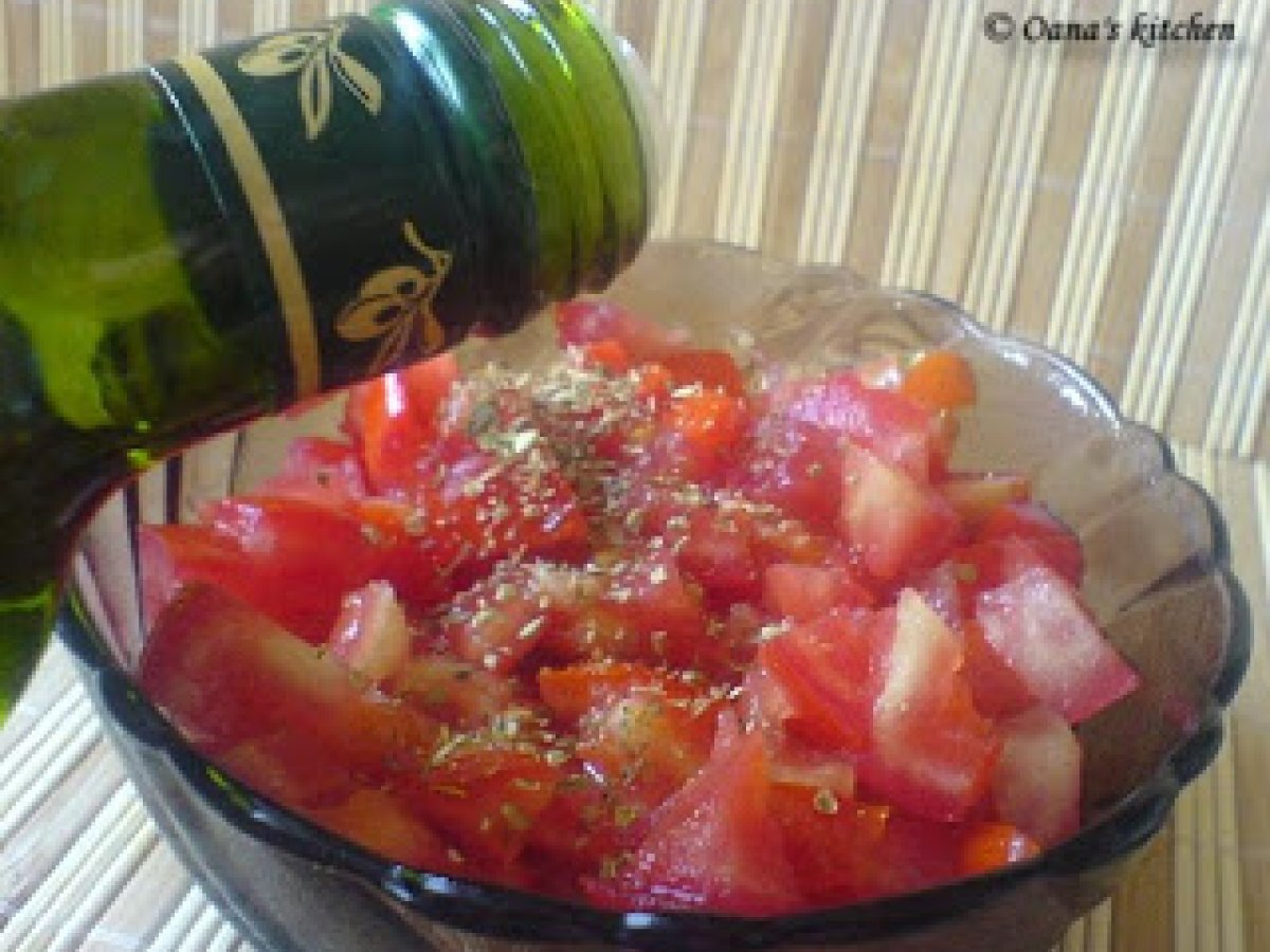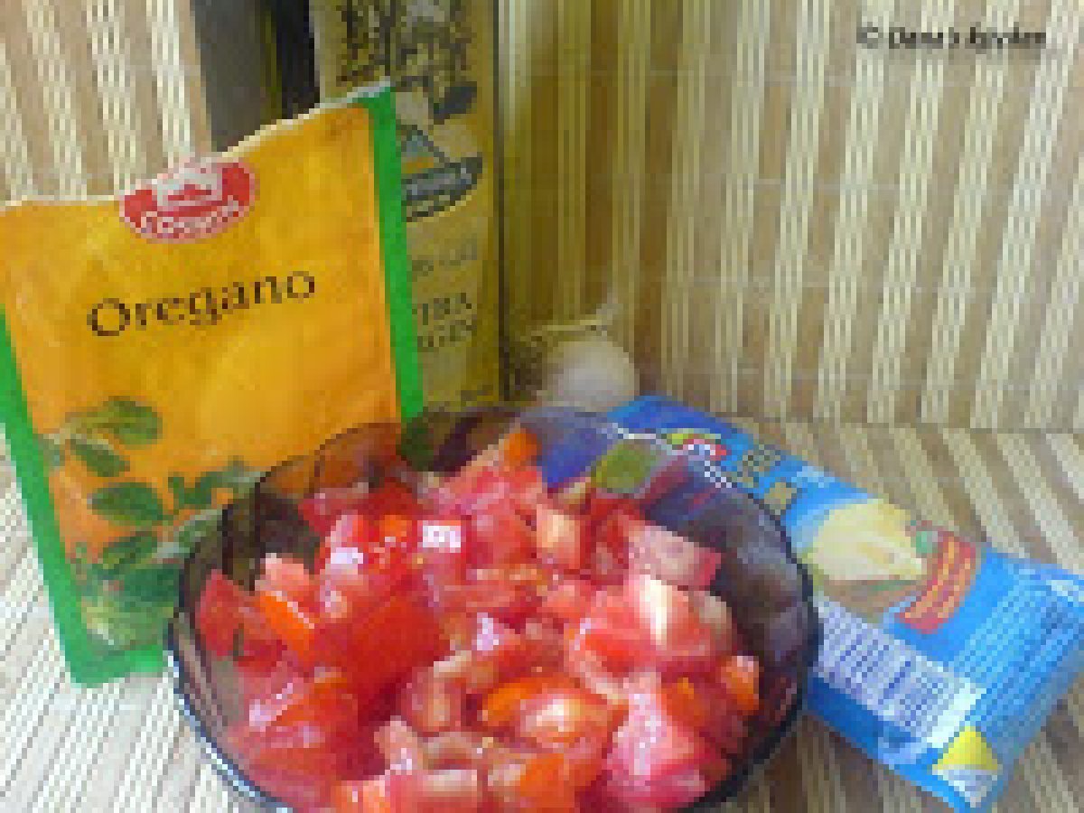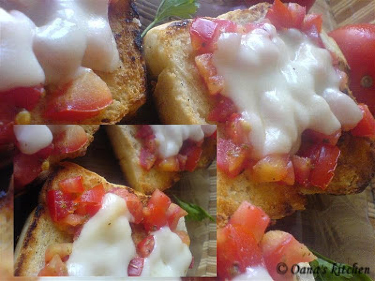 Bruschete ... savoare italiana PrecedentulUrmătorul Felul principalFoarte ușor40 min Trimite unui prieten Printează pagina Adresează o întrebare autorului Postează o poză cu rețeta gătită de tine Ingrediente 4 Cateva felii de paine ulei de masline usturoi oregano rosii proaspete cascaval