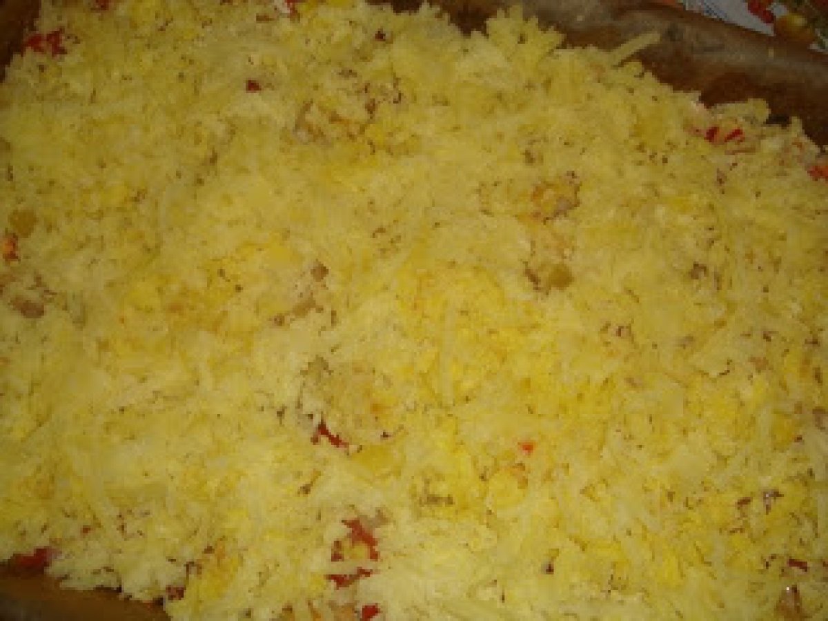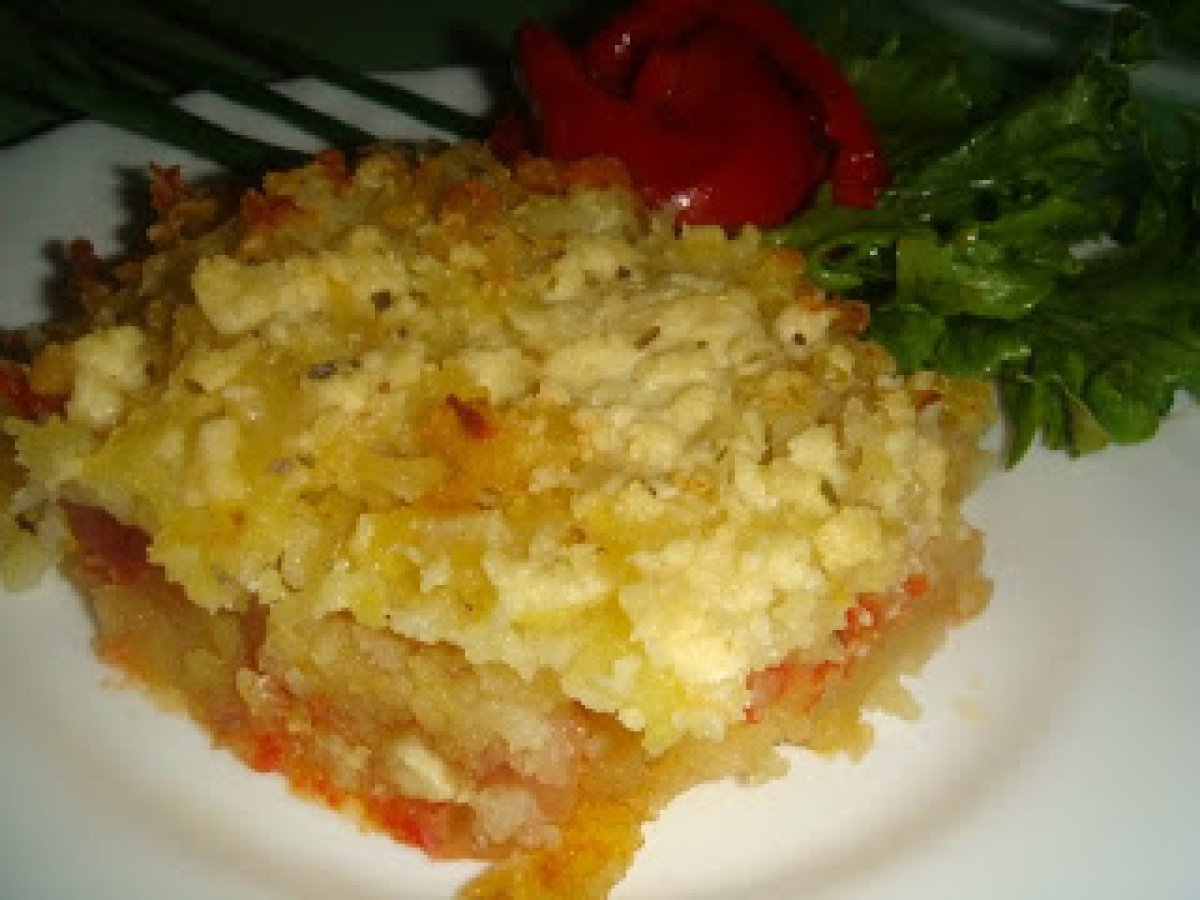 Budinca de cartofi PrecedentulUrmătorul Felul principalFoarte ușor40 min Trimite unui prieten Printează pagina Adresează o întrebare autorului Postează o poză cu rețeta gătită de tine Ingrediente 6 500 g cartofi fierti 1 ceapa mare jumate ardei rosu 4 graunti usturoi sare ulei oregano branza sarata sau cascaval 5 lg pasta rosi