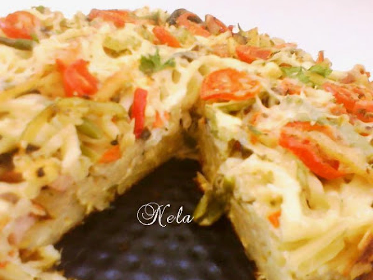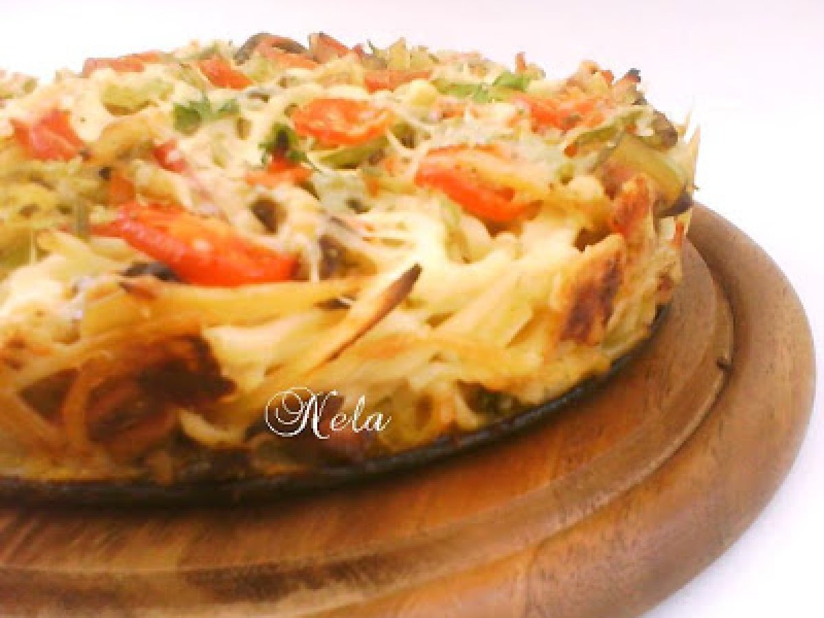 Budinca de paste cu legume PrecedentulUrmătorul Felul principalFoarte ușor40 min Trimite unui prieten Printează pagina Adresează o întrebare autorului Postează o poză cu rețeta gătită de tine Ingrediente 8 un dovlecel un morcov un pastarnac o ceapa telina un ardei 4-5 ciuperci 3 oua o ceasca lapte o lingura smantana o rosie 50 g cascaval patrunjel sare ,piper ,oregano