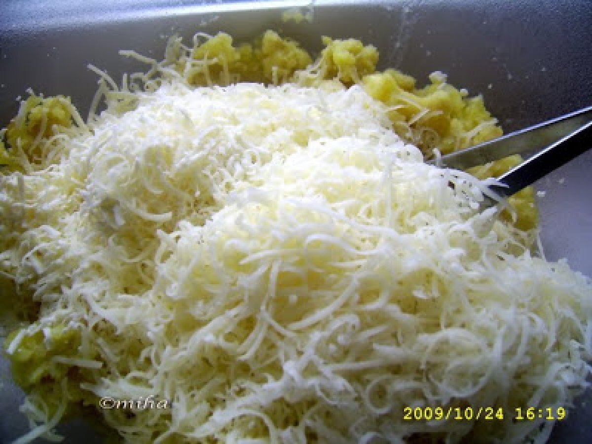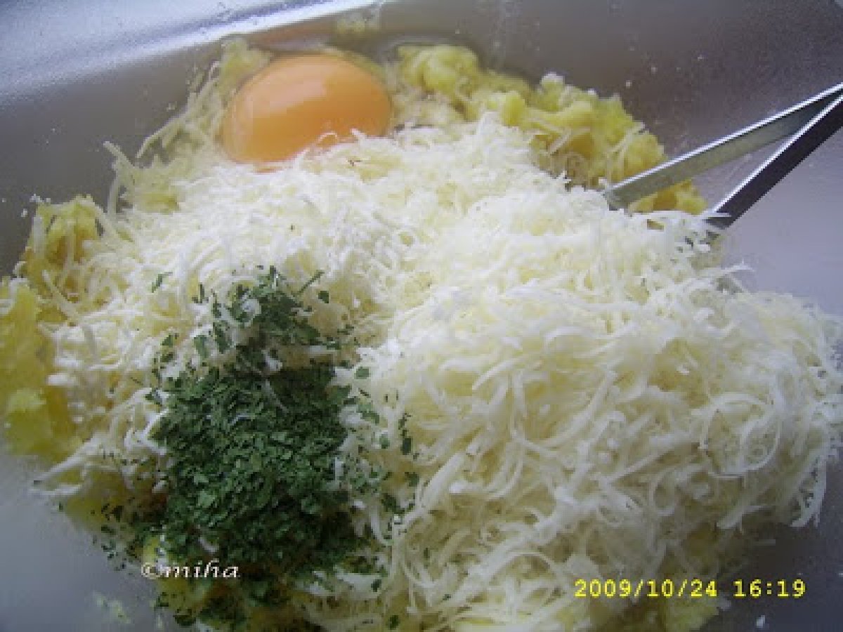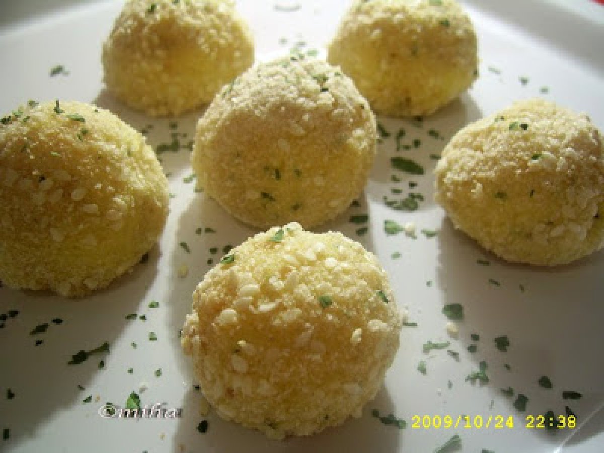 Bulgarasi de cartofi cu branza PrecedentulUrmătorul Felul principalFoarte ușor40 min Trimite unui prieten Printează pagina Adresează o întrebare autorului Postează o poză cu rețeta gătită de tine Ingrediente 2 3 cartofi 50 g telemea 50 g cascaval 50 g unt 1 ou 1 lingura patrunjel uscat sare si piper 2 linguri susan 50 g pesmet
