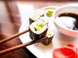 California sushi rolls Felul principalFoarte ușor45 min Trimite unui prieten Printează pagina Adresează o întrebare autorului Postează o poză cu rețeta gătită de tine Ingrediente 4 2 foi Nori 2 cani orez pentru Sushi 1 buc avocado curatat si taiat pe lungime in bastonase 3 bastonase carne de crab pisata 1 lingura de maioneza boabe de susan 1/2 lingurita sare sos de soia Wasabi