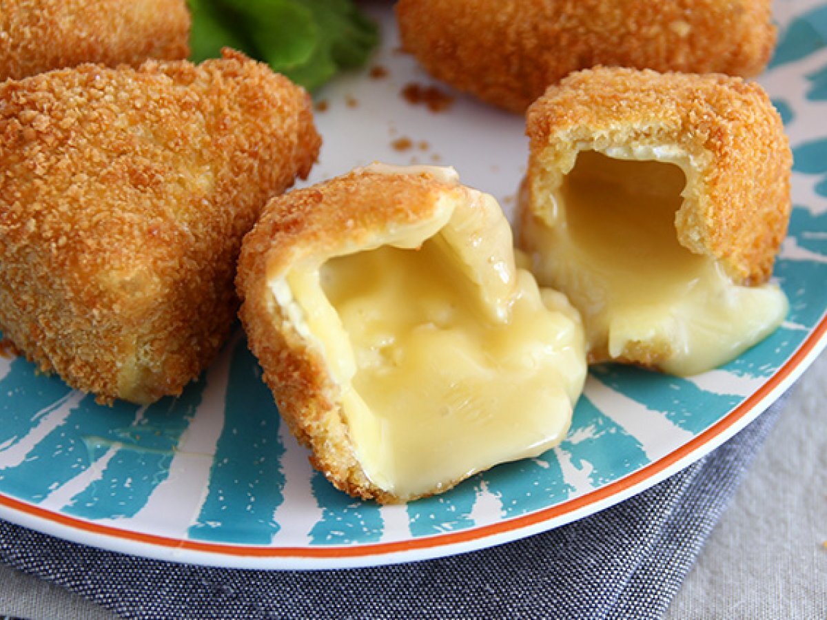 Coacerea: Asezati bucatile de Camembert pe o foaie de copt intr-o tava si turnati peste ele o cantitate de ulei. Coaceti timp de 15 minute la 180° C. Coacerea in cuptor nu va avea acelasi rezultat - o crusta crocanta si aurie si un miez moale.
