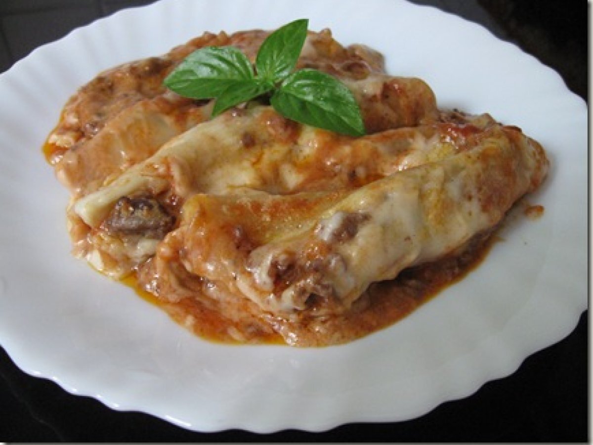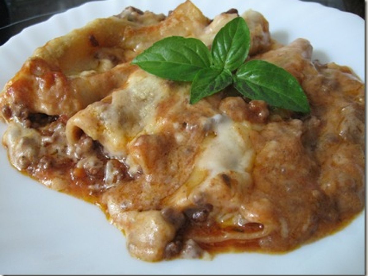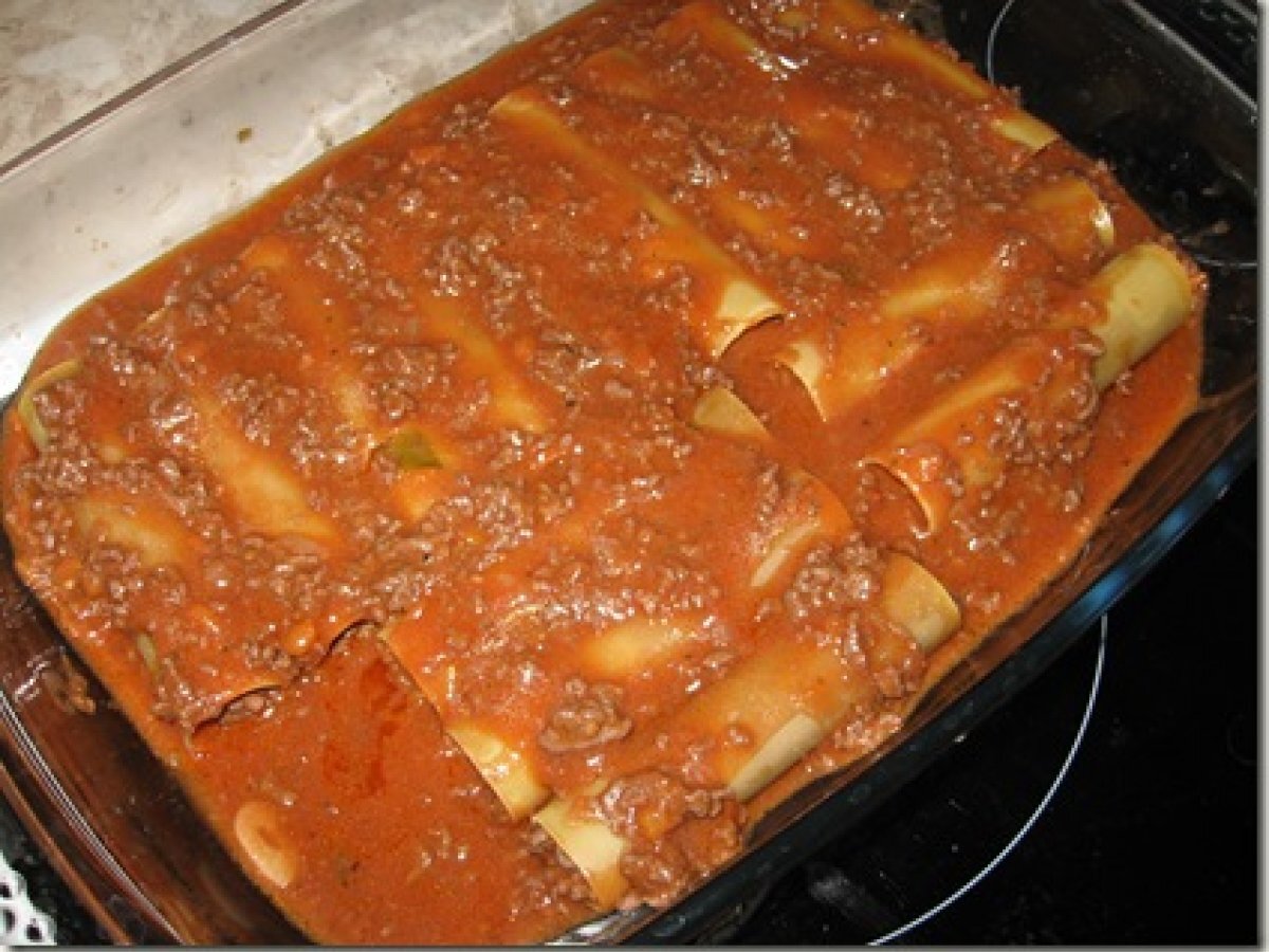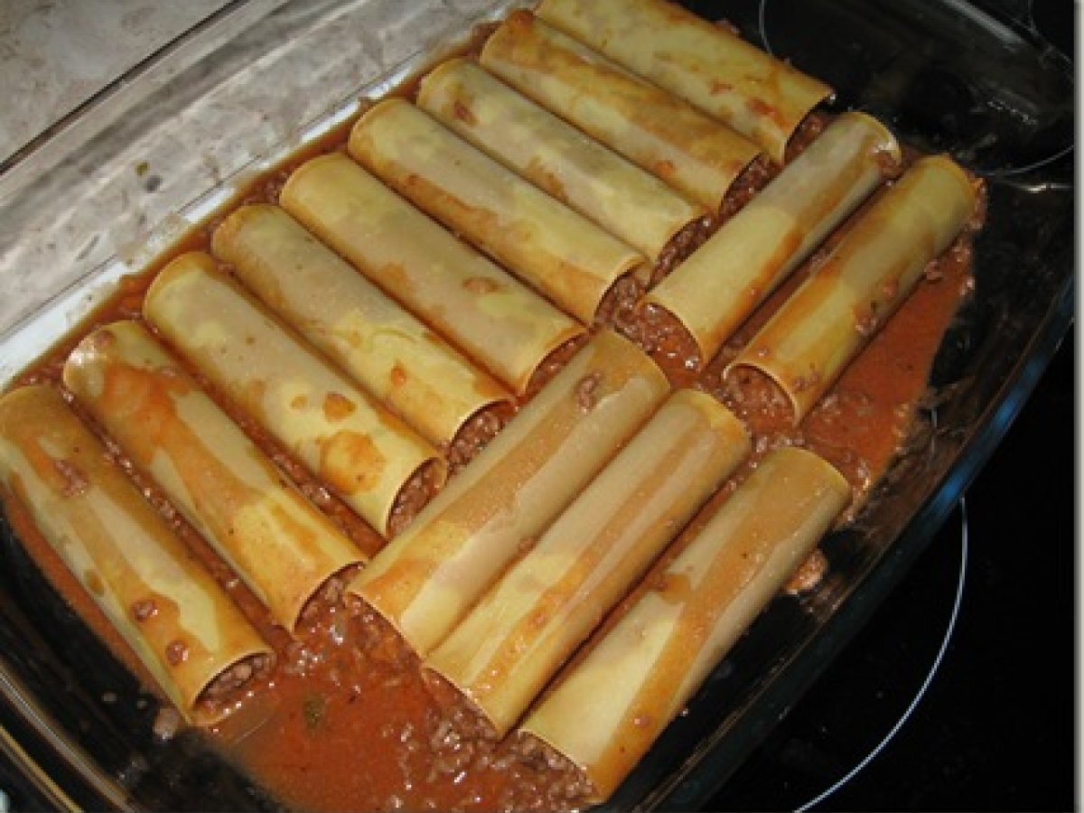 Cannelloni alla bolognese PrecedentulUrmătorul Felul principalFoarte ușor2 h 30 m Trimite unui prieten Printează pagina Adresează o întrebare autorului Postează o poză cu rețeta gătită de tine Ingrediente 4 14 buc cannelloni, 100 g parmezan ras (sau cascaval) Sosul bolognese: 400 g carne tocata de vita, 1 morcov mic, 1 ceapa, 1 felie de telina (optional), 1 lingura ulei de masline, 1-2 catei de usturoi, 1 rosie, 100 ml vin rosu, 100 ml apa, 200 ml suc de rosii, 1 lingurita zahar, dafin, oregano, busuioc, sare, piper Sosul bechamel: 50 g unt, 50 g faina (2 linguri), 500 ml lapte, nucsoara, sare, piper