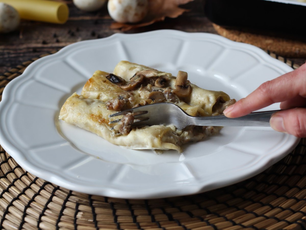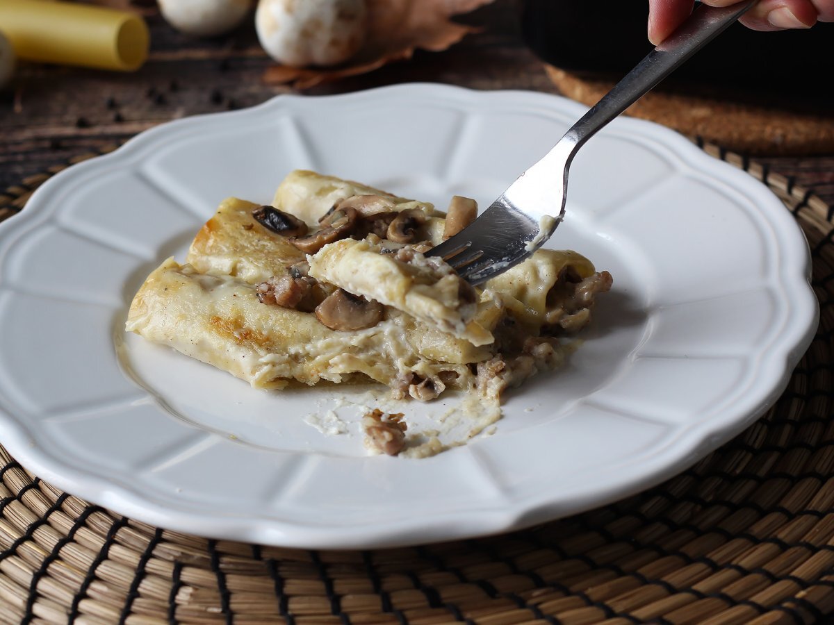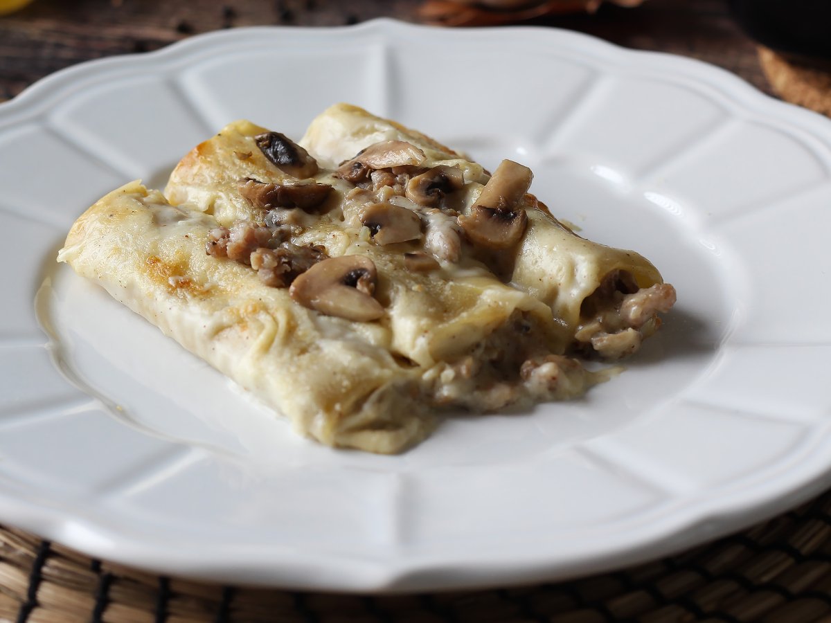 O imersiune în tradiția culinară italiană. Cannelloni cu ciuperci și cârnați este un fel de mâncare care a fost transmis din generație în generație, combinând simplitatea ingredientelor cu bogăția gustului. Un clasic al bucătăriei casnice, perfect pentru prânzurile de duminică cu familia sau pentru sărbătorile de Crăciun, când oamenii se adună în jurul unei mese. O explozie de arome în fiecare îmbucătură: dulceața ciupercilor, savoarea cârnaților și cremozitatea bechamelului se îmbină într-o armonie perfectă. Prepararea cannelloni cu ciuperci și cârnați este o joacă de copii, tot ce trebuie să faceți este să urmați rețeta noastră pas cu pas pentru a realiza un fel de mâncare care îi va lăsa pe toți fără cuvinte!