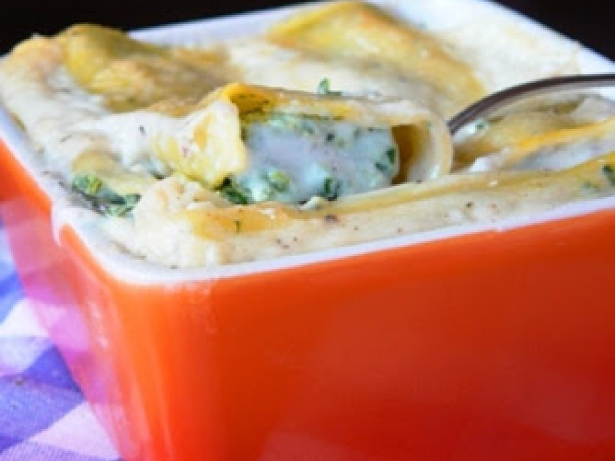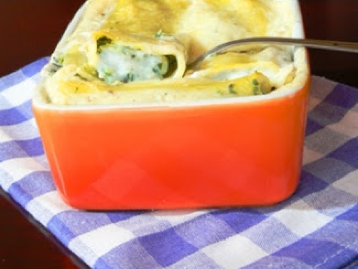 Cannelloni cu spanac si ricotta PrecedentulUrmătorul Felul principalFoarte ușor50 min Trimite unui prieten Printează pagina Adresează o întrebare autorului Postează o poză cu rețeta gătită de tine Ingrediente 6 Pentru umplutura : 350 g ricotta sau urda dulce 400 g pure de spanac proaspat bine scurs deapa,sau pure de spanac congelat 1 ou putin ulei un catel de usturoi sare,piper pesmet Sos Bechamel : 500 ml lapte 30 g unt 30 g faina sare,piper alb praf de nucsoara Pentru topping : sos Bechamel parmezan ras