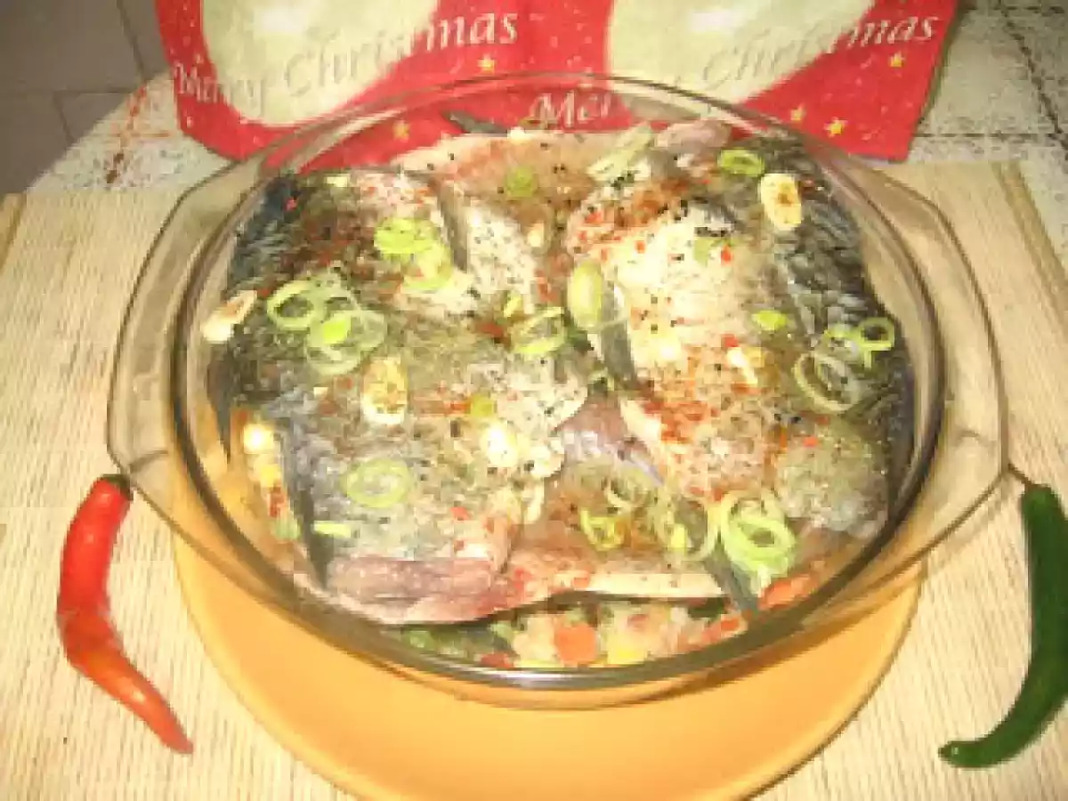 Caras marinat cu legume PrecedentulUrmătorul Felul principalFoarte ușor45 min Trimite unui prieten Printează pagina Adresează o întrebare autorului Postează o poză cu rețeta gătită de tine Ingrediente 4 2-3 carasi mai marisori 1 cana vin alb cimbru usturoi chili foi de dafin o punga legume congelate 1 praz ardei iute 2 linguri pasta de tomate ulei sare piper putin marar verde