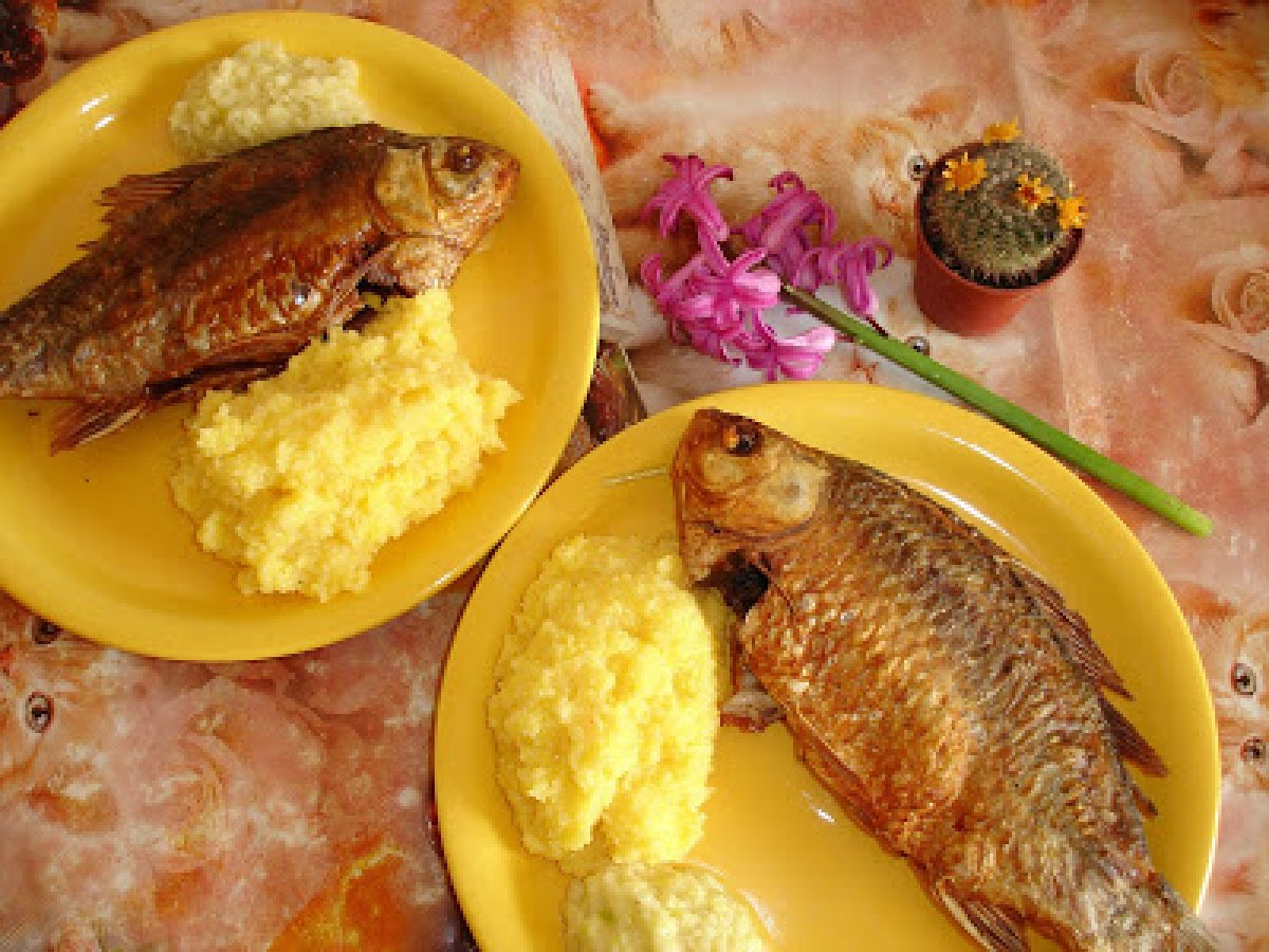 Caras prajit cu mamaliguta si mujdei de usturoi Felul principalFoarte ușor25 min Trimite unui prieten Printează pagina Adresează o întrebare autorului Postează o poză cu rețeta gătită de tine Ingrediente 3 Caras sau alt peste Malai Usturoi Ulei pentru prajit 1 galbenus faina Condimente : cimbru piper boia vegeta oregano