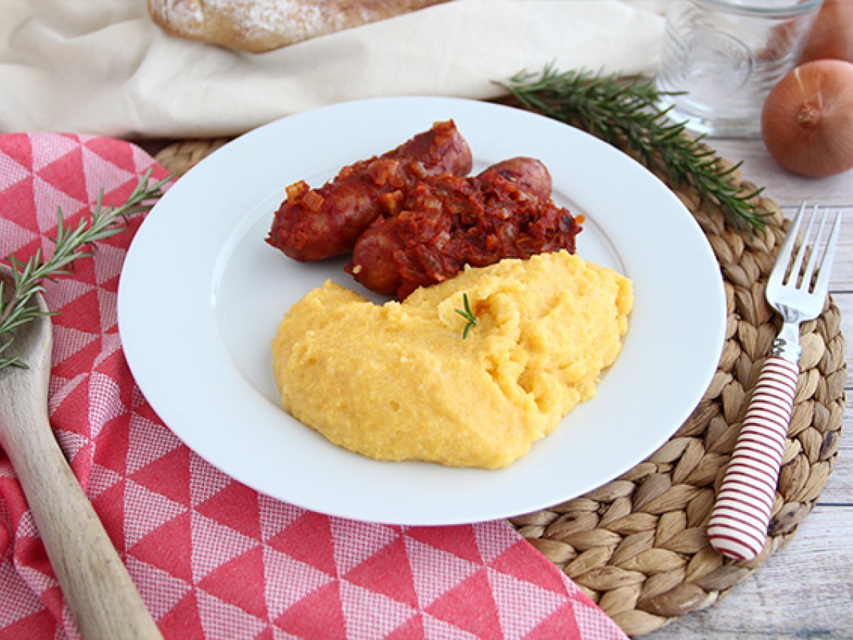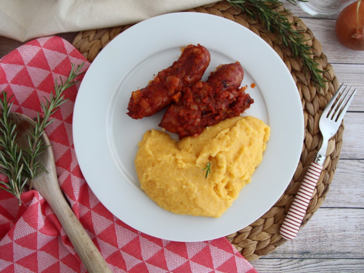 O reteta simpla: carnati cu mamaliga! Pentru mai multe arome si un plus de gust am adaugat banza Comté. Savurati!
