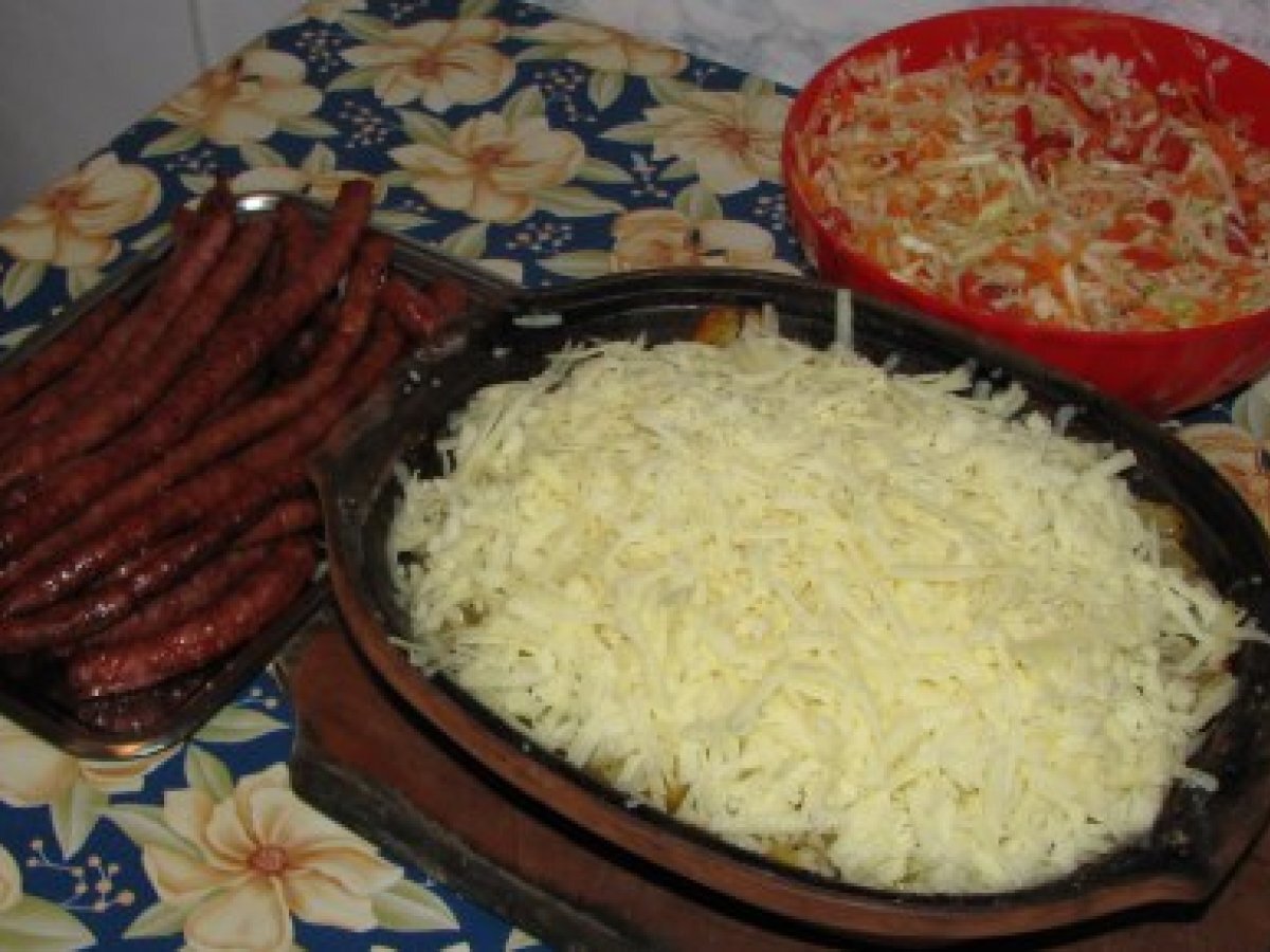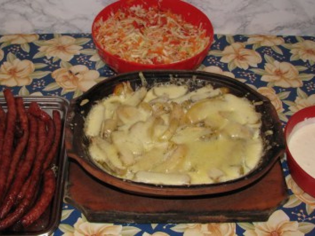 Carnati de sibiu cu garnitura de cartofi in bere si cascaval ? PrecedentulUrmătorul Felul principalFoarte ușor40 min Trimite unui prieten Printează pagina Adresează o întrebare autorului Postează o poză cu rețeta gătită de tine Ingrediente 6 Carnati de Sibiu Cartofi Cascaval BEREE!!! Sos de usturoi cu smantana