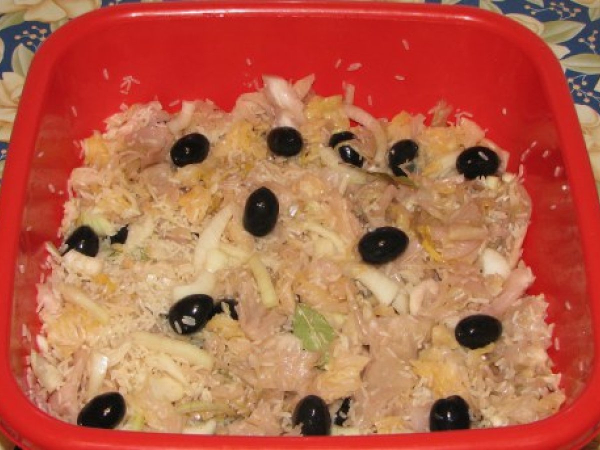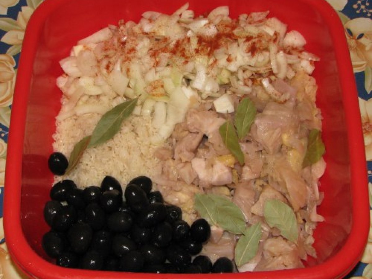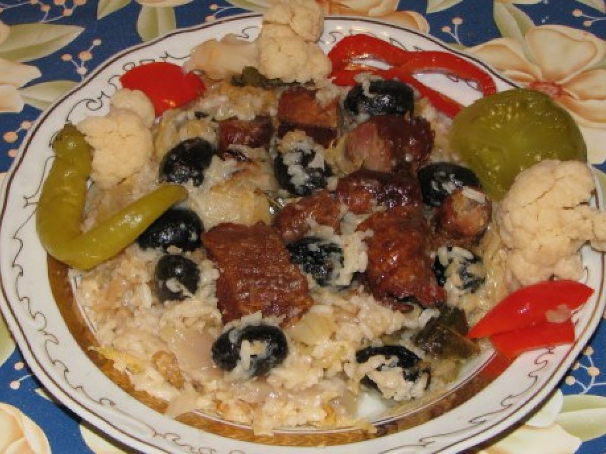 Carne de la garnita cu varza, orez, masline si ceapa PrecedentulUrmătorul Felul principalFoarte ușor1 h 32 m Trimite unui prieten Printează pagina Adresează o întrebare autorului Postează o poză cu rețeta gătită de tine Ingrediente 6 Carnati si muschi de porc de la garnita (500 g) Varza murata Orez prefiert (600 g) Masline (400 g) Ceapa Foi de dafin