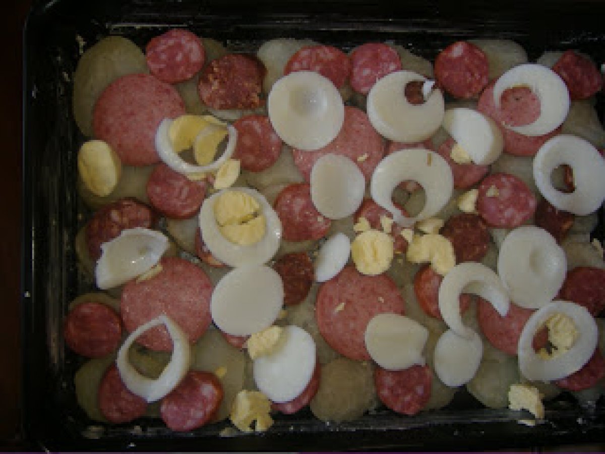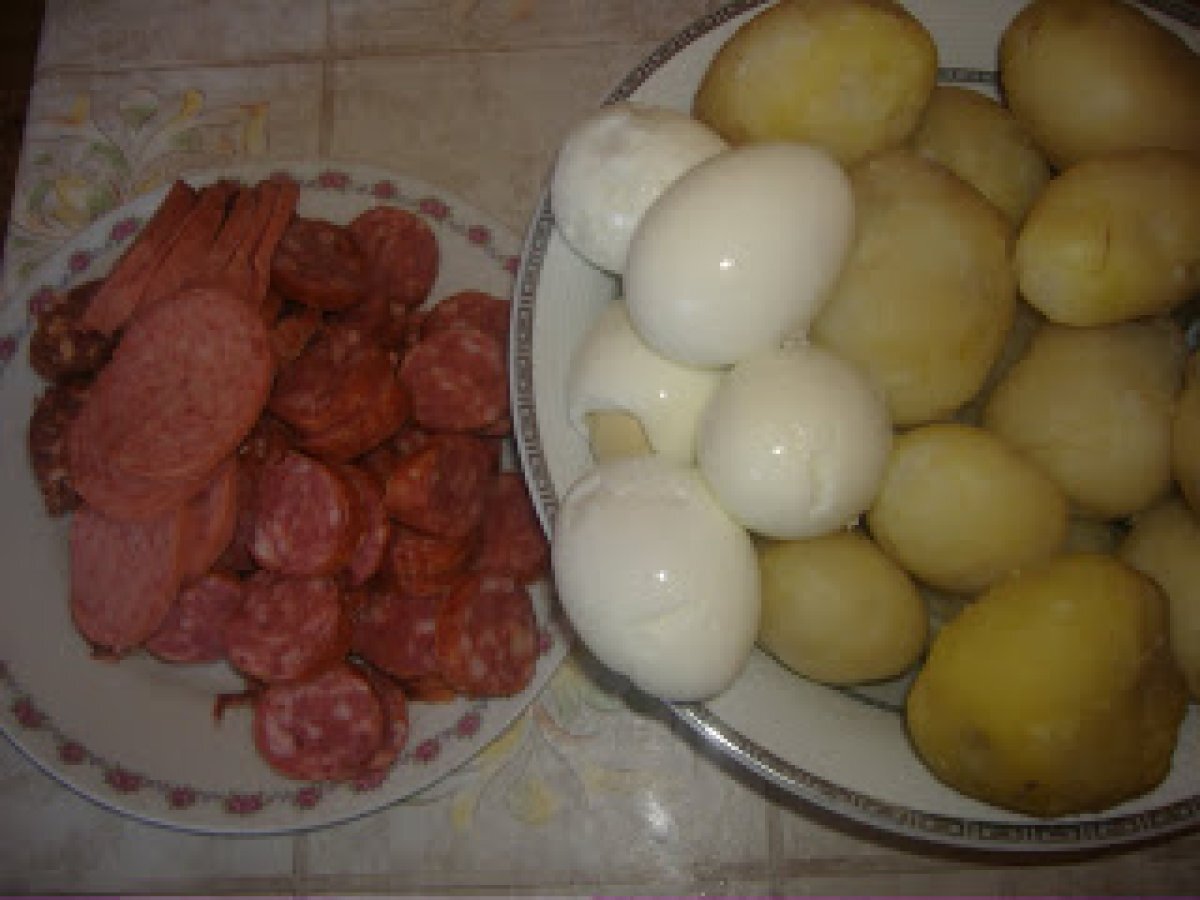 Cartofi ardelenesti PrecedentulUrmătorul Felul principalFoarte ușor1 oră Trimite unui prieten Printează pagina Adresează o întrebare autorului Postează o poză cu rețeta gătită de tine Ingrediente 2 5-6 cartofi 2 carnati 5 oua branza sau cascaval sare, piper