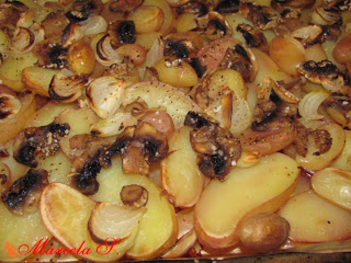 Cartofi fingerling cu ceapa si ciuperci la cuptor Felul principalFoarte ușor40 min579 Kcal Trimite unui prieten Printează pagina Adresează o întrebare autorului Postează o poză cu rețeta gătită de tine Ingrediente 4 2 kg cartofi fingerling /sau cartofi rosii noi 2 cepe 1 kg ciuperci sare, piper ulei de masline Cost estimat: 8.37Euros€ (2.09€/porție)