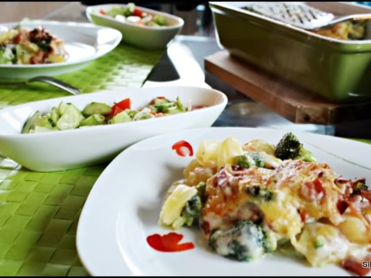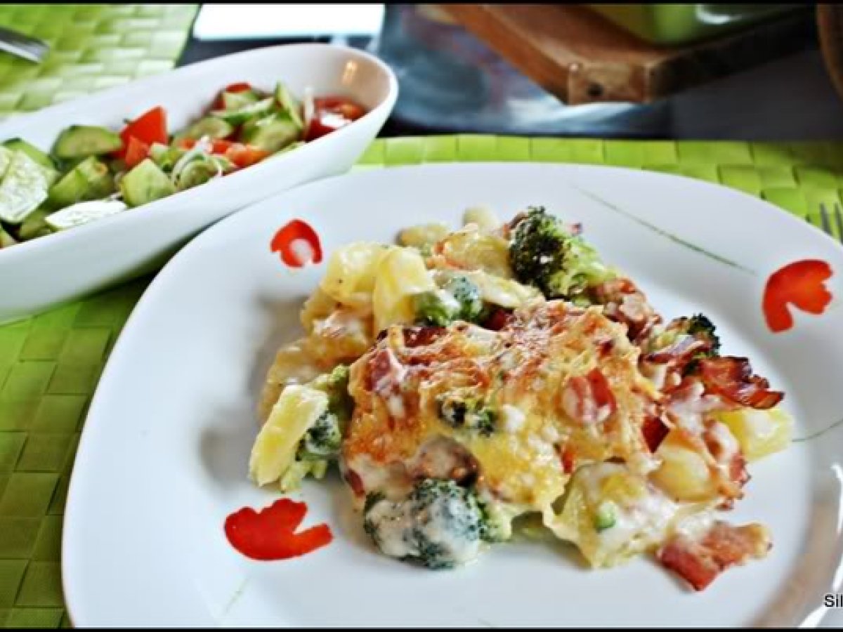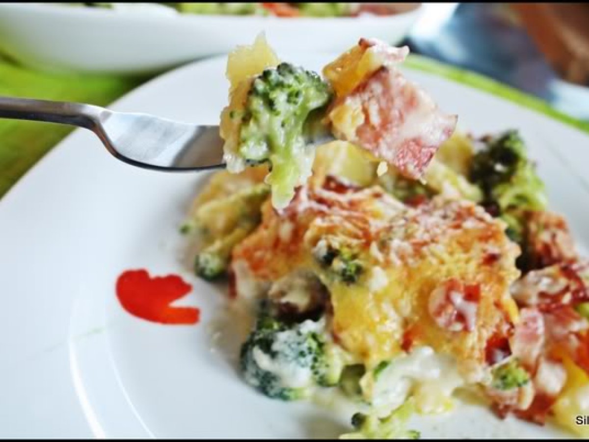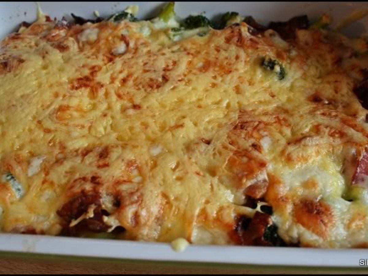 Cartofi gratin, cu bacon si broccoli PrecedentulUrmătorul Felul principalFoarte ușor40 min Trimite unui prieten Printează pagina Adresează o întrebare autorului Postează o poză cu rețeta gătită de tine Ingrediente 4 cartofi fierti in coaja buchetele de broccoli oparite 5 minute in apa clocotita cascaval bacon sos bechamel (unt, faina, lapte, condimente)