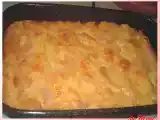 Desi am mancat tot felul de variante de cartofi gratinati cu ceapa, cu branza de burduf sau cu oua, aceasta reteta mi-a placut cel mai mult. V-o ofer si voua si sper sa va placa la fel de mult !