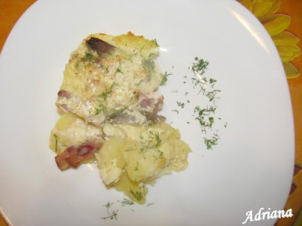 Cartofi la tava cu muschi si smantana PrecedentulUrmătorul Felul principalFoarte ușor1 h 25 m Trimite unui prieten Printează pagina Adresează o întrebare autorului Postează o poză cu rețeta gătită de tine Ingrediente 2 4 cartofi jumate cutie de smantana (200 g) marar, patrunjel 1/4 cescuta cu lapte