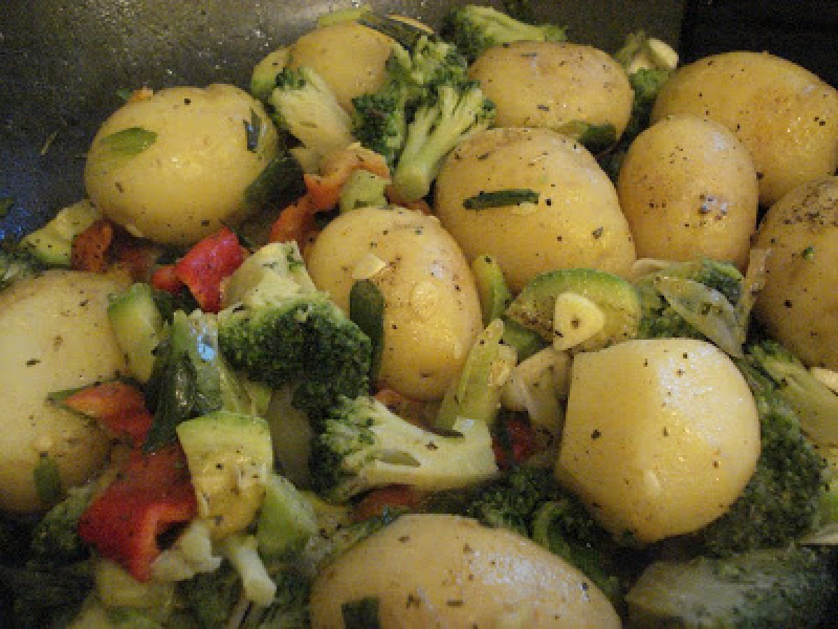 Cartofi noi cu legume la wok PrecedentulUrmătorul Felul principalFoarte ușor45 min Trimite unui prieten Printează pagina Adresează o întrebare autorului Postează o poză cu rețeta gătită de tine Ingrediente 4 1/2 kg de cartofi noi mici 4-5 fire de ceapa verde 1/2 de dovlecel 1 ardei capia copt cateva buchetele de broccoli 50 g unt condimente