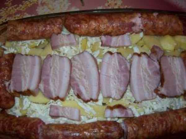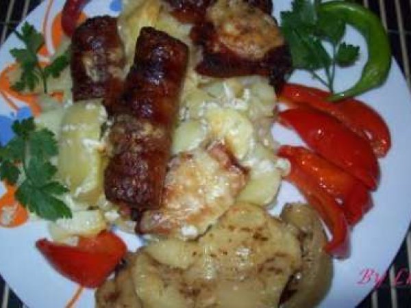 Cartofi taranesti cu afumatura si cascaval PrecedentulUrmătorul Felul principalFoarte ușor40 min Trimite unui prieten Printează pagina Adresează o întrebare autorului Postează o poză cu rețeta gătită de tine Ingrediente 6 1 kg cartofi 500 g carnati afumati 300 g kaizer 300 g cascaval 200 g branza telemea