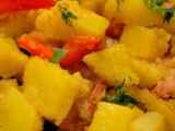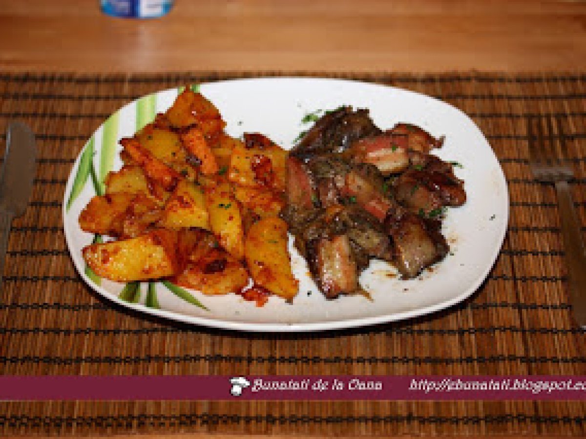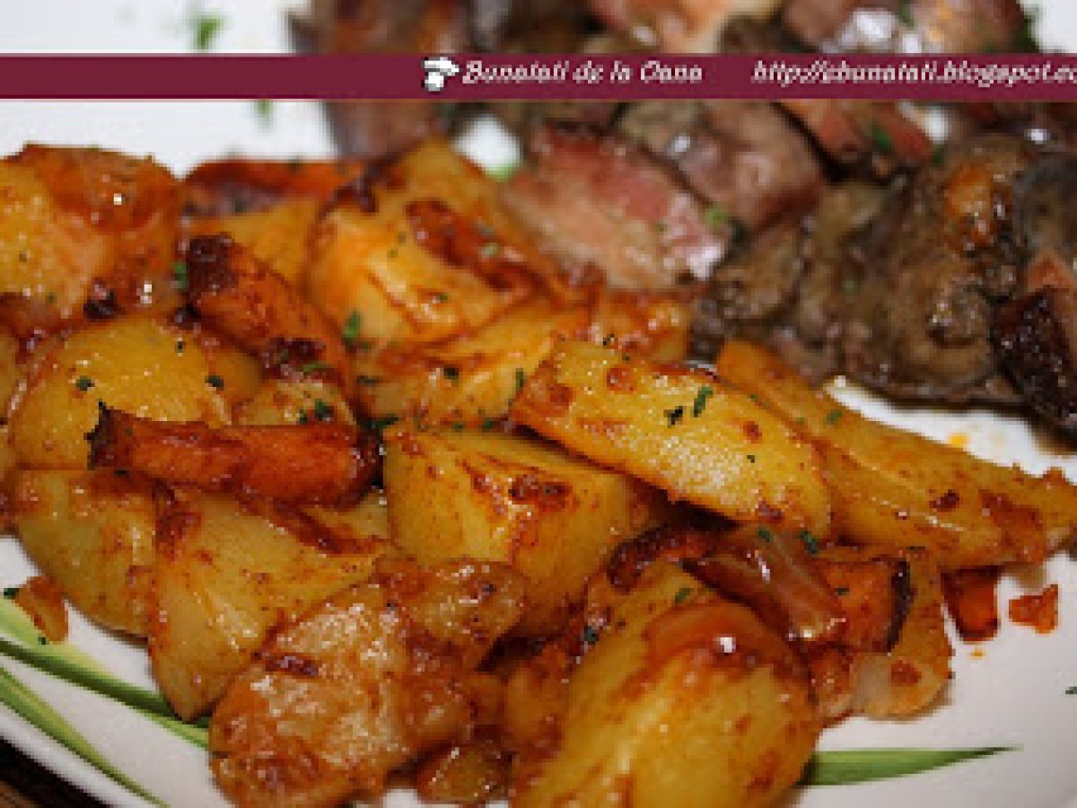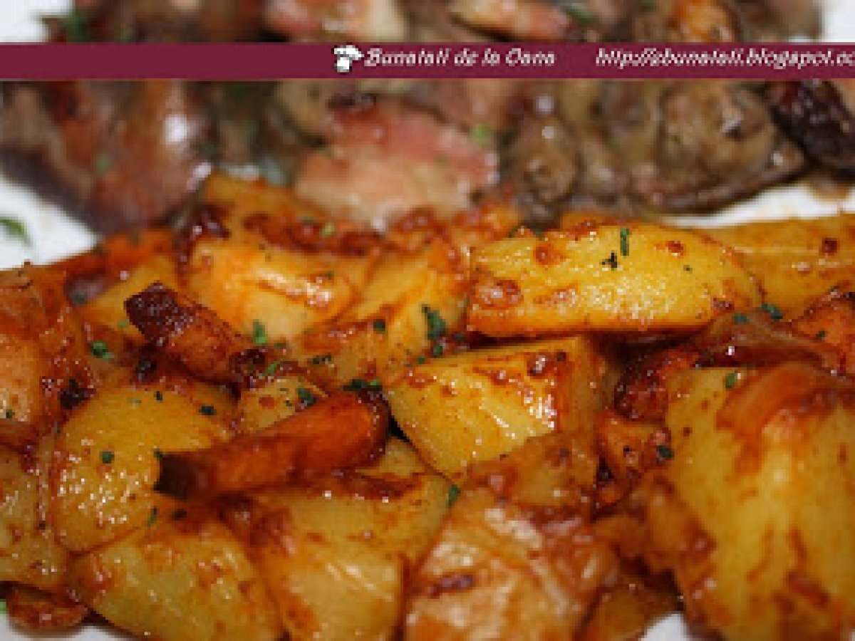 Cartofi taranesti PrecedentulUrmătorul Felul principalFoarte ușor45 min Trimite unui prieten Printează pagina Adresează o întrebare autorului Postează o poză cu rețeta gătită de tine Ingrediente 4 4 cartofi maricei o ceapa mare 1/4 ceasca de ulei o lingurita de boia iute 2 lingurite boia dulce 1/2 lingurita piper sare dupa gust optional 3-4 felii de muschiulet afumat