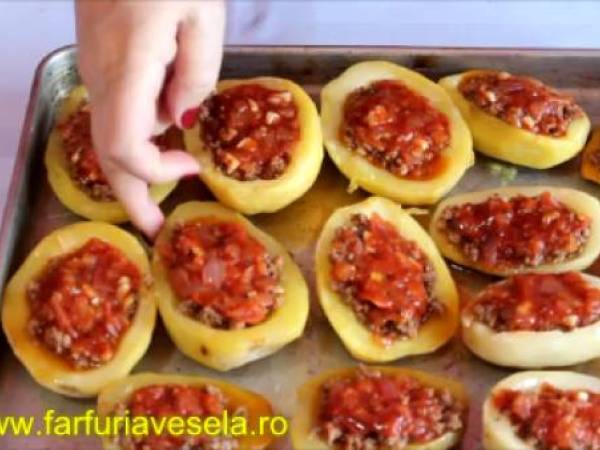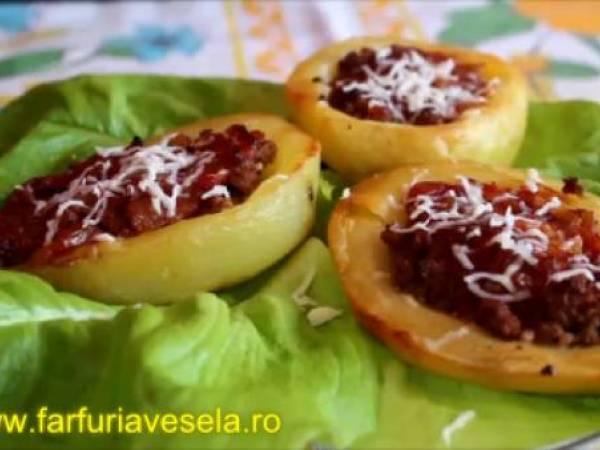 Astazi am pregatit ceva foarte usor, interesant ca imagine si nu in ultim rand, gustos si anume cartofi umpluti cu carne tocata.