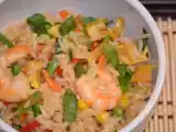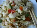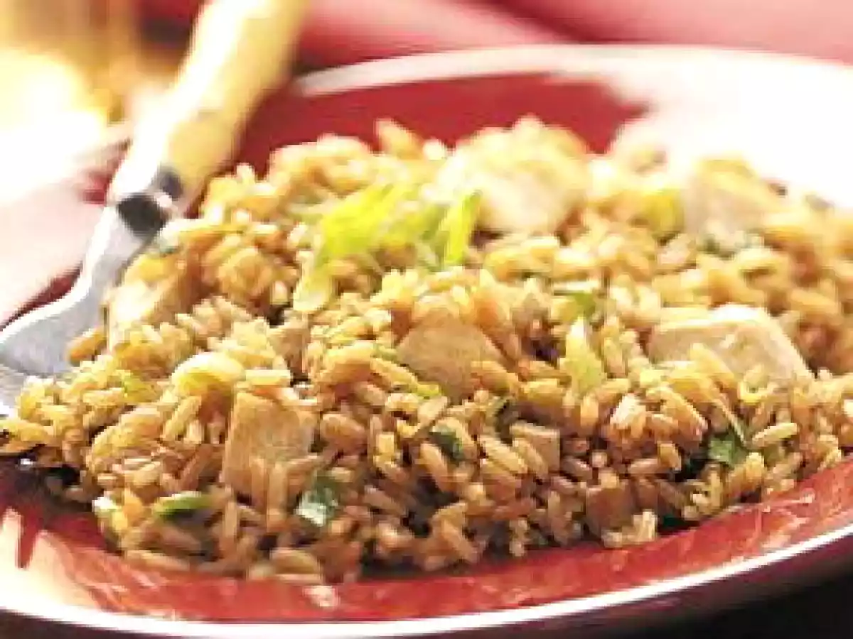 Chao fan sau orez prajit Felul principalFoarte ușor45 min Trimite unui prieten Printează pagina Adresează o întrebare autorului Postează o poză cu rețeta gătită de tine Ingrediente 6 2 cepe verzi taiate fin 2 oua mari 1 lingurita sare piper 2 sau 3 linguri ulei 4 cani de orez fiert cu cel putin o zi in urma 2 linguri sos de soia