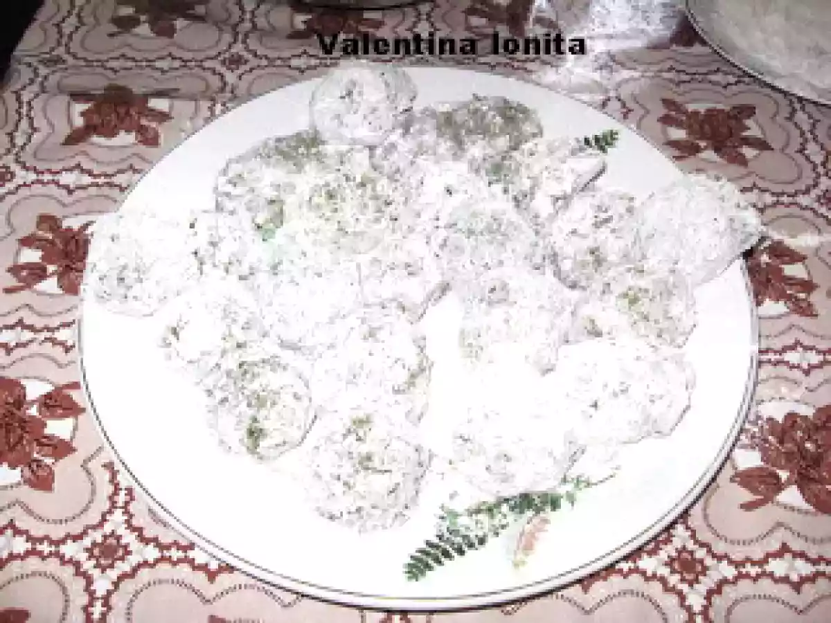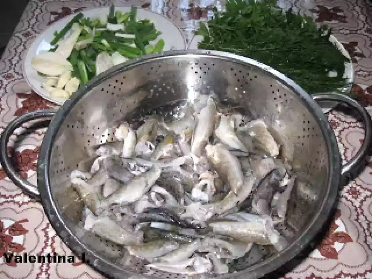 Chiftelute din guvizi de apa dulce PrecedentulUrmătorul Felul principalFoarte ușor50 min201 Kcal Trimite unui prieten Printează pagina Adresează o întrebare autorului Postează o poză cu rețeta gătită de tine Ingrediente 4 2 kg guvizi de apa dulce 6 catei de usturoi uscat si o legatura de usturoi verde sau dupa gust 4 fire de ceapa verde si o ceapa uscata o felie de paine inmuiata in lapte sau apa si stoarsa foarte bine 1-2 legaturi marar jumatate legatura de patrunjel sare piper dupa gust 2 oua faina ulei pentru prajit . Cost estimat: 2.57Euros€ (0.64€/porție)