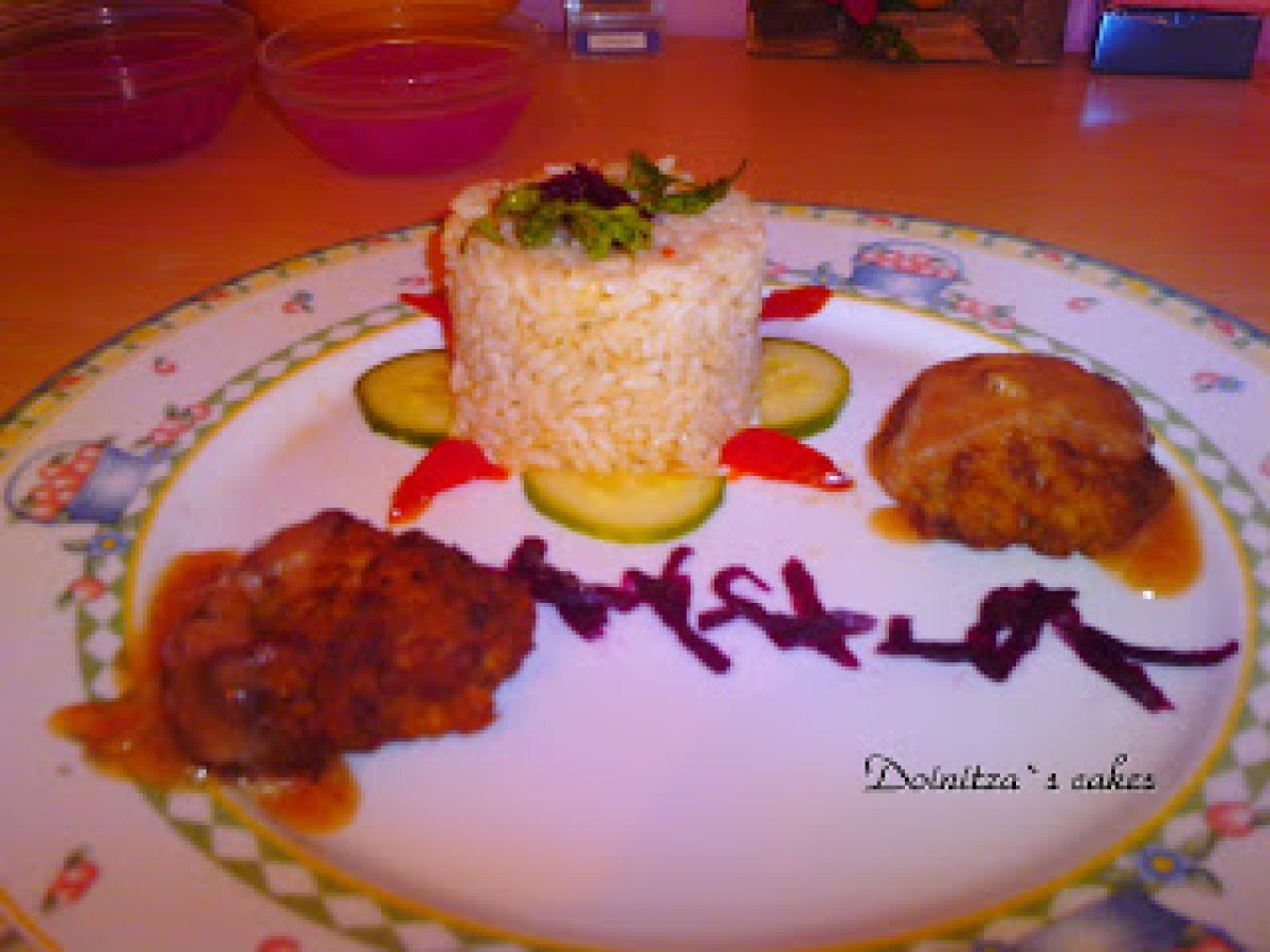 Chiftelute marinate cu orez PrecedentulUrmătorul Felul principalFoarte ușor35 min Trimite unui prieten Printează pagina Adresează o întrebare autorului Postează o poză cu rețeta gătită de tine Ingrediente 4 Pentru orez : 200 g orez,putin piper, boia,vegeta, sare, 2 lg ulei Pentru chiftelute : 300 g carne de vita si de porc, 1 ou,usturoi,putin piper, boia, sare, pesmet sau doua feliute de paine Pentru sos: o frunzulita de dafin, o lingurita de miere, 3 lg ulei de masline pt prajit, 1 lg faina, o rosie sau 1pahar de bulion de casa ,usturoi