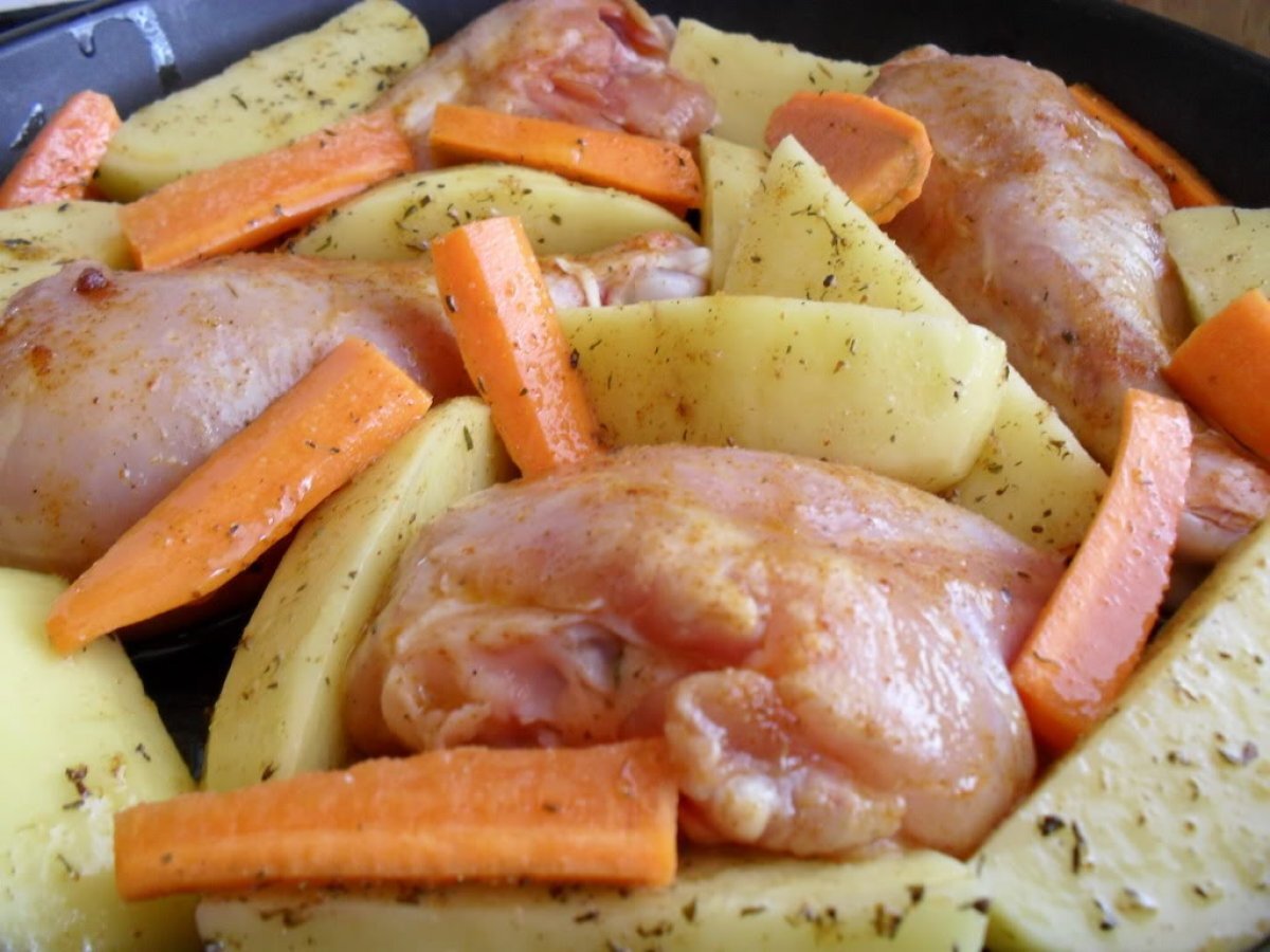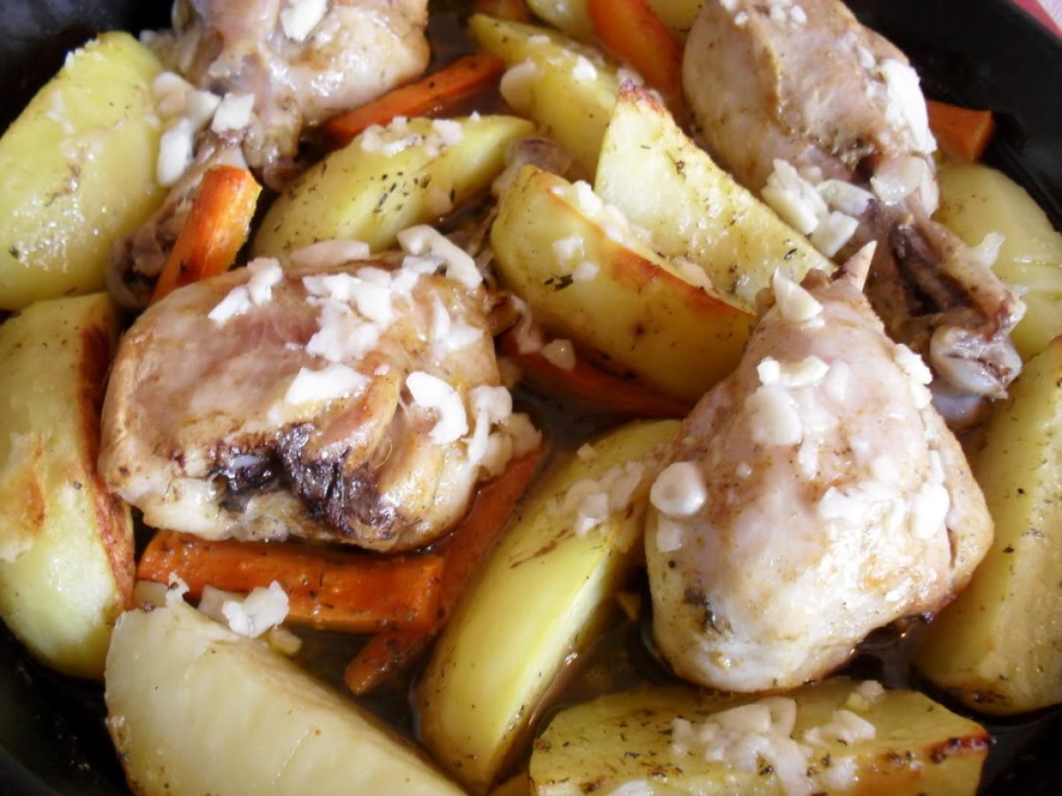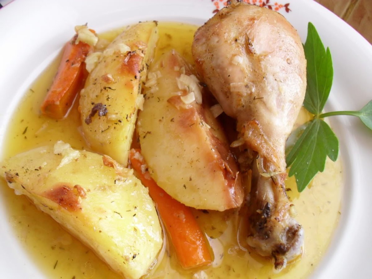 Ciocanele cu cartofi in vin alb PrecedentulUrmătorul Felul principalFoarte ușor50 min Trimite unui prieten Printează pagina Adresează o întrebare autorului Postează o poză cu rețeta gătită de tine Ingrediente 4 4 pulpe de pui 1/2 kg cartofi 2-3 morcovi condimente pt pui, sare ,piper, cimbru, condimente pt cartofi mujdei de usturoi