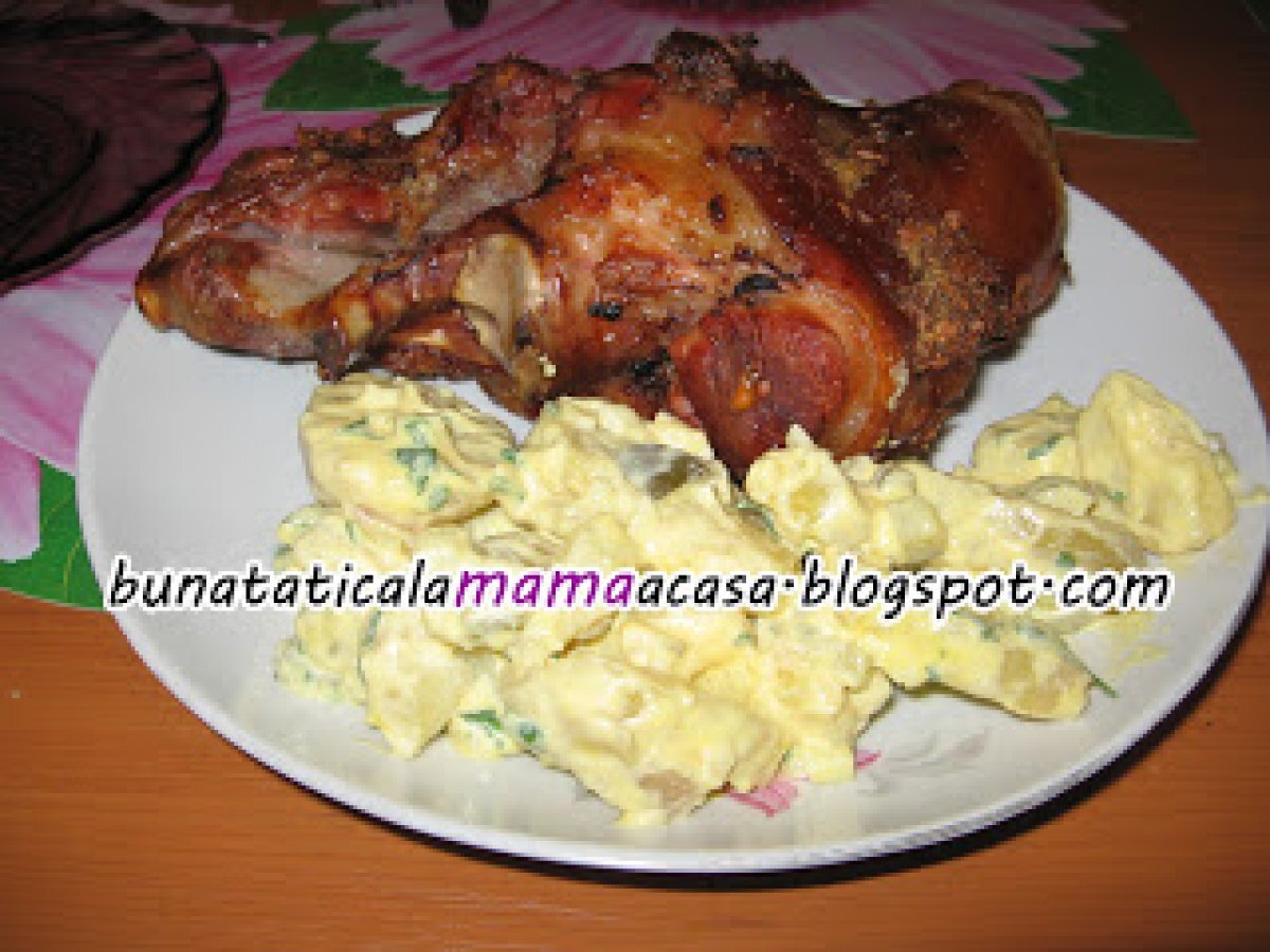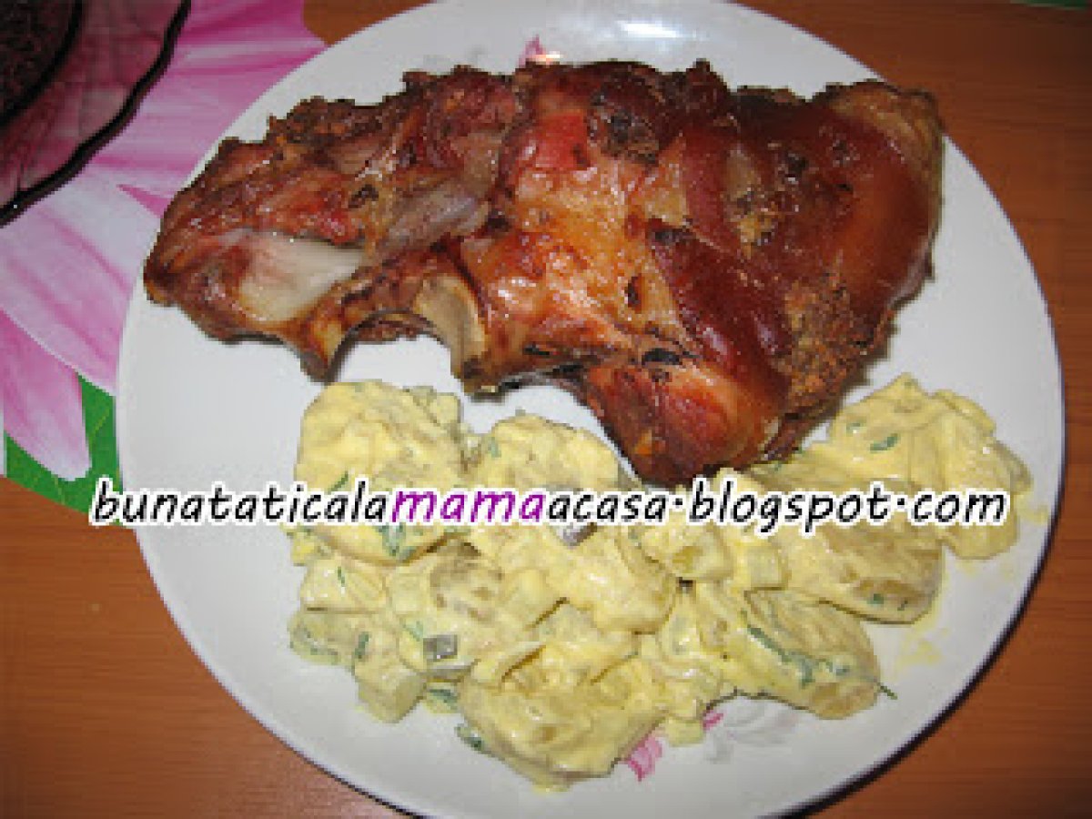 Ciolan de porc la cuptor cu salata de cartofi PrecedentulUrmătorul Felul principalFoarte ușor35 min Trimite unui prieten Printează pagina Adresează o întrebare autorului Postează o poză cu rețeta gătită de tine Ingrediente 4 1 ciolan 3-4 catei usturoi sare si piper 1-2 lingurite chimen bere blonda salata de cartofi: Cartofi 1-2 castraveti murati 1 ceapa rosie sare si piper patrunjel verde pentru sosul salatei: 2 linguri maioneza un iaurt cremoso 1 lingurita mustar sare