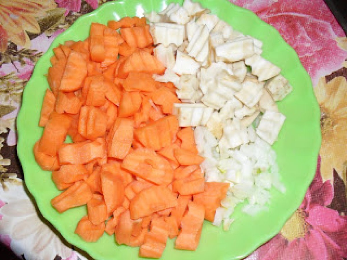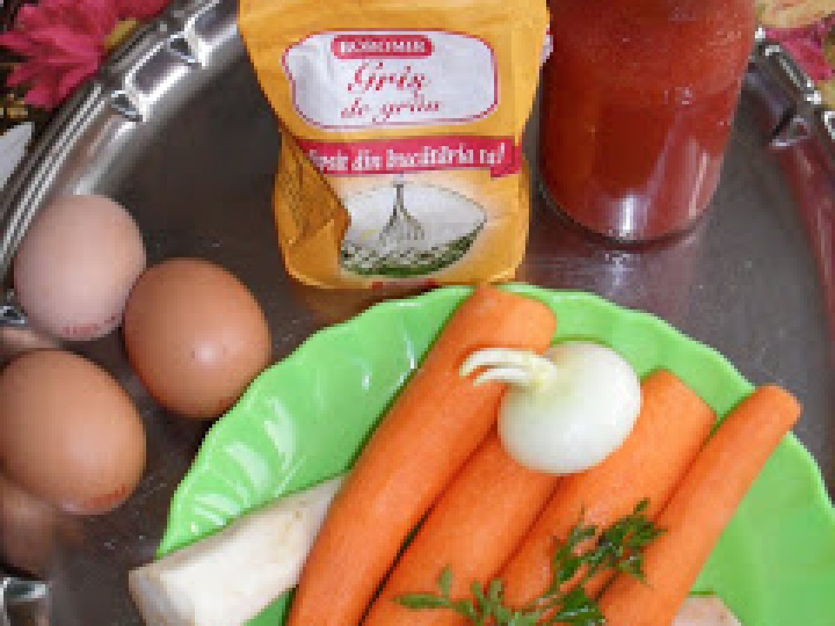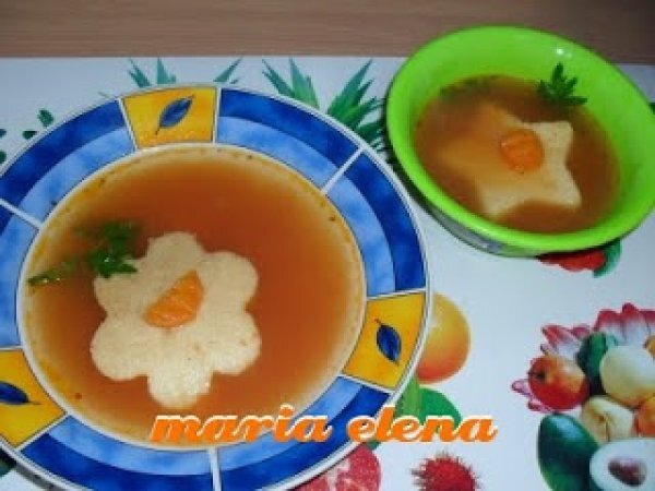 Ciorba cu bulion si galuste PrecedentulUrmătorul Felul principalFoarte ușor1 h 20 m Trimite unui prieten Printează pagina Adresează o întrebare autorului Postează o poză cu rețeta gătită de tine Ingrediente 4 4 morcovi 1 ceapa 1 radacina patrunjel 1 telina mica 3 oua 1 cescuta gris ulei pt prajit aluatul de gris legatura patrunjel verde 2 lingurite vegeta cu gust de gaina 500 ml bulion (o jumatate de litru)
