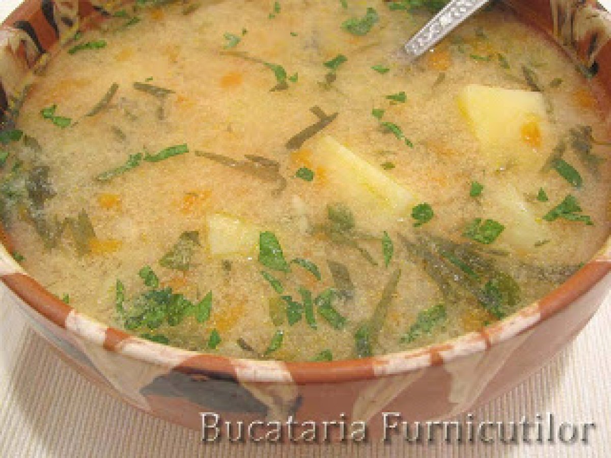 Ciorba de cartofi cu tarhon PrecedentulUrmătorul Felul principalFoarte ușor35 min Trimite unui prieten Printează pagina Adresează o întrebare autorului Postează o poză cu rețeta gătită de tine Ingrediente 5 4 - 5 cartofi 1 morcov 1 pastarnac 1 telina mica 1 ceapa 200 ml suc de rosii 3 linuguri ulei 1 legatura patrunjel 1 legatura tarhon proaspat sau tarhon in otet optional: 1 ou, 3 linguri iaurt sare dupa gust