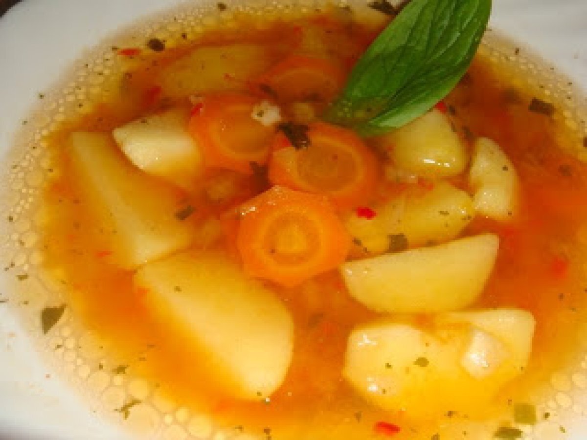 Ciorba de cartofi PrecedentulUrmătorul Felul principalFoarte ușor40 min Trimite unui prieten Printează pagina Adresează o întrebare autorului Postează o poză cu rețeta gătită de tine Ingrediente 2 Cartofi un morcov o ceapa 2 lg paste steluta bors maggi sau zeama de lamaie leustean o ling de maggi secretul gustului de legume 2 lg ulei masline 2 lg de pasta de ardei sau un ardei rosu crud