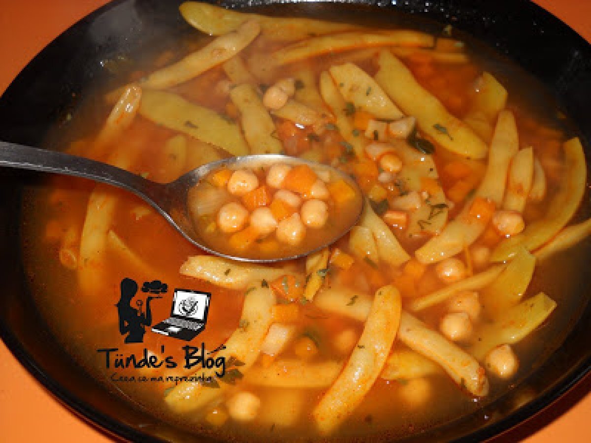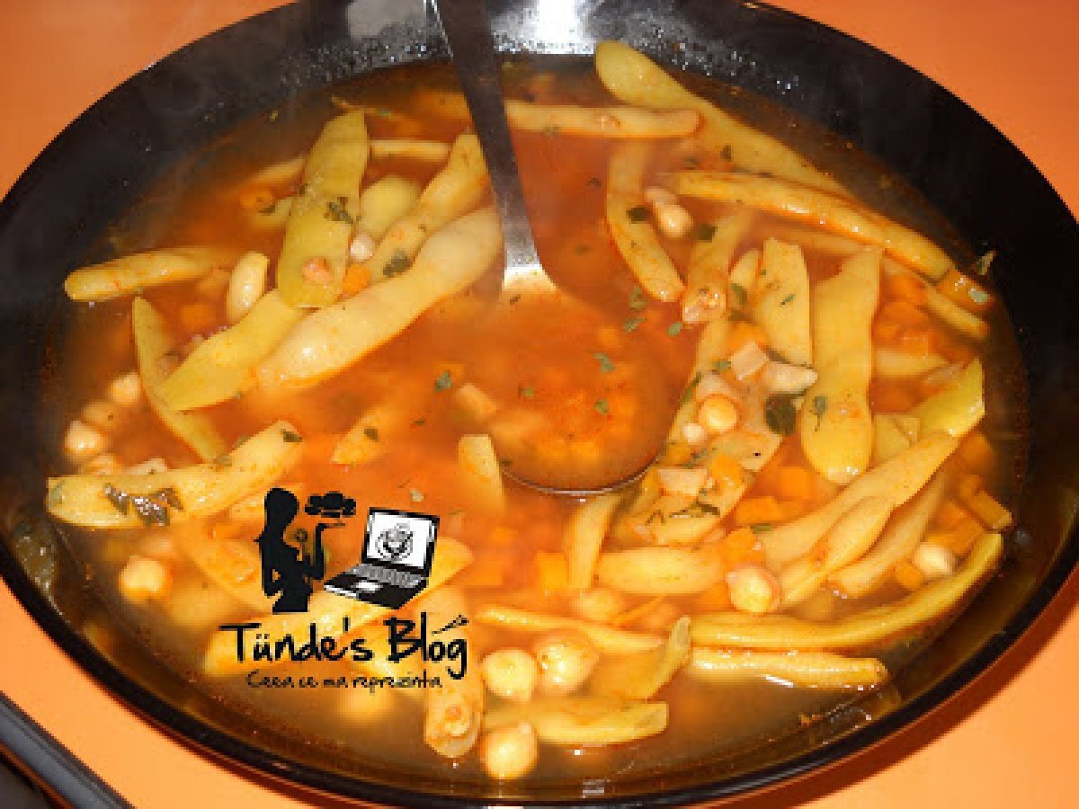 Ciorba de fasole verde si boabe de naut PrecedentulUrmătorul Felul principalFoarte ușor50 min Trimite unui prieten Printează pagina Adresează o întrebare autorului Postează o poză cu rețeta gătită de tine Ingrediente 5 300 g naut (conserva sau naut boabe eu am folosit boabe de naut) 500 g fasole verde 2 morcovi un patrunjel radacina 4-5 rosii sau suc de rosii 2 catei de usturoi o legatura de patrujel zeama de la jumatate de lamaie jumate de legatura de leustean (sau leustean uscat)