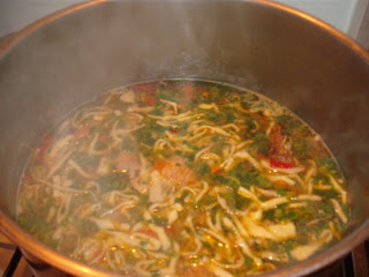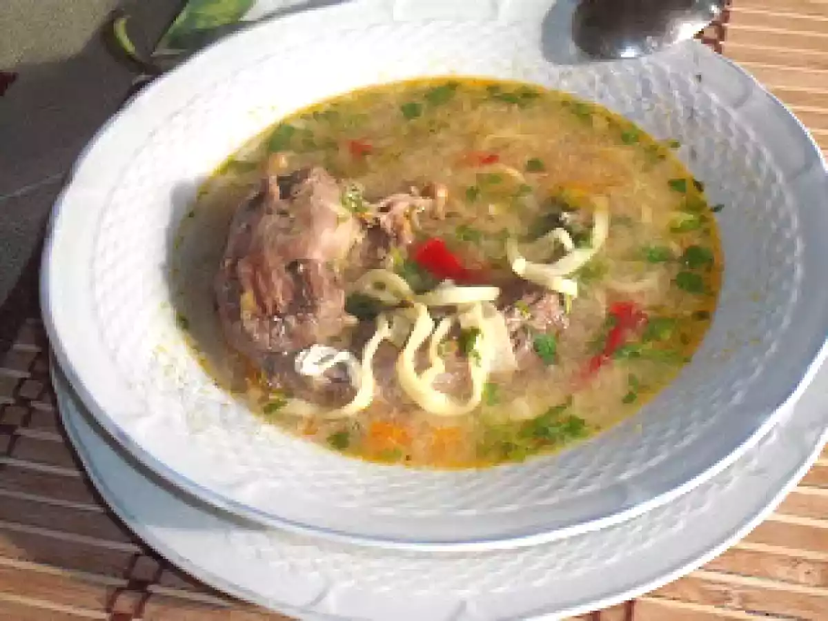 Ciorba de gaina cu taitei de casa PrecedentulUrmătorul Felul principalFoarte ușor50 min Trimite unui prieten Printează pagina Adresează o întrebare autorului Postează o poză cu rețeta gătită de tine Ingrediente 4 Cantitati; Tacam de ciorba de la o gaina(spate,aripi,gat,picioare,maruntaie), un morcov, o ceapa mare, un pastarnac, o bucata mica telina, un ardei gras, 250 ml suc de rosii o radacina mica patrunjel sare 1 l bors de casa o legatura mare de patrunjel verde un ou pentru dres ciorba pentru taitei ne trebuie o cana de faina,un ou,un praf de sare
