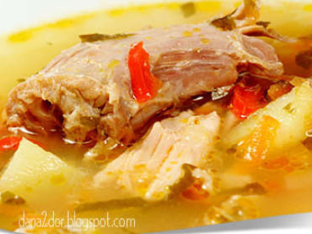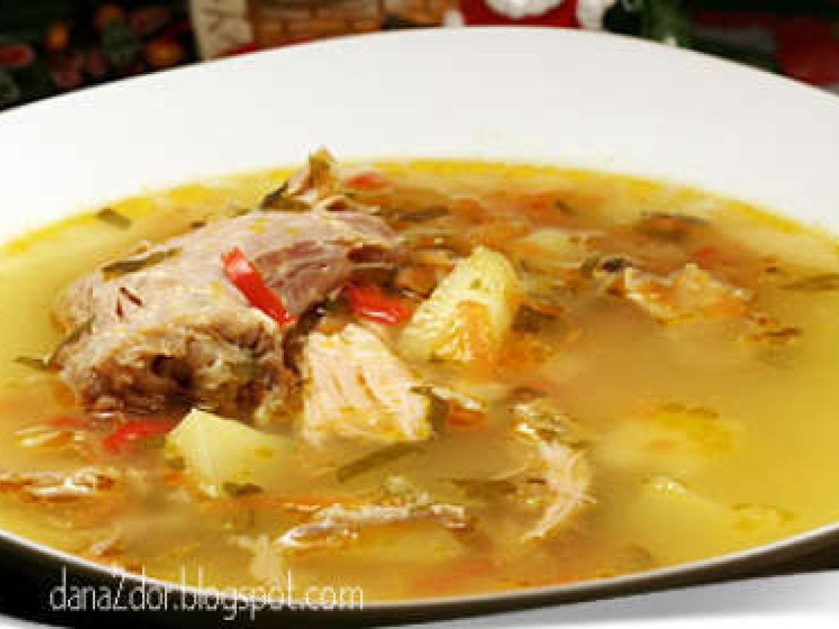Ciorba de potroace din tacamuri de curcan PrecedentulUrmătorul Felul principalUșor1 h 20 m Trimite unui prieten Printează pagina Adresează o întrebare autorului Postează o poză cu rețeta gătită de tine Ingrediente 8 doua aripi si doua gaturi de curcan, o telina medie, doi morcovi, doi ardei grasi (unul verde si unul rosu), doua cepe mijlocii, 3 cartofi, un litru zeama de varza pentru acrit, leustean, patrunjel, ardei iute, sare.