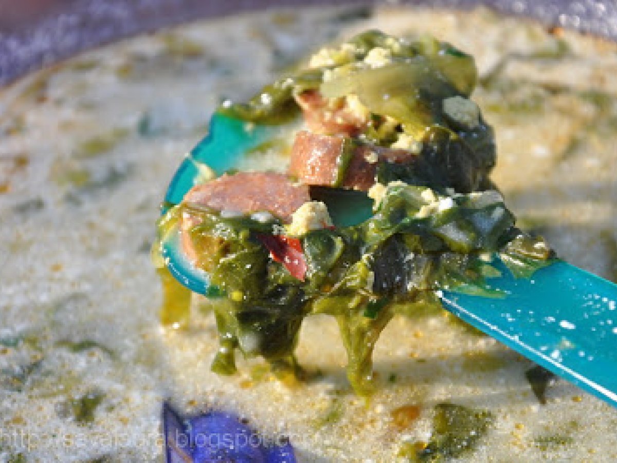 Ciorba de salata verde cu carnati PrecedentulUrmătorul Felul principalFoarte ușor45 min Trimite unui prieten Printează pagina Adresează o întrebare autorului Postează o poză cu rețeta gătită de tine Ingrediente 6 4 salate verzi 2, 3 linguri ulei 200 g. carnati proaspeti sau afumati 3, 4 catei de usturoi 1 legatura ceapa verde 1 legatura usturoi verde 1 morcov 1 ardei gras 1 rosie 2 cartofi 50 ml. ulei 2 litri apa sare, piper 3 oua 2 linguri otet 200 g. smantana 1 legatura mica de patrunjel sau marar 1 lamaie